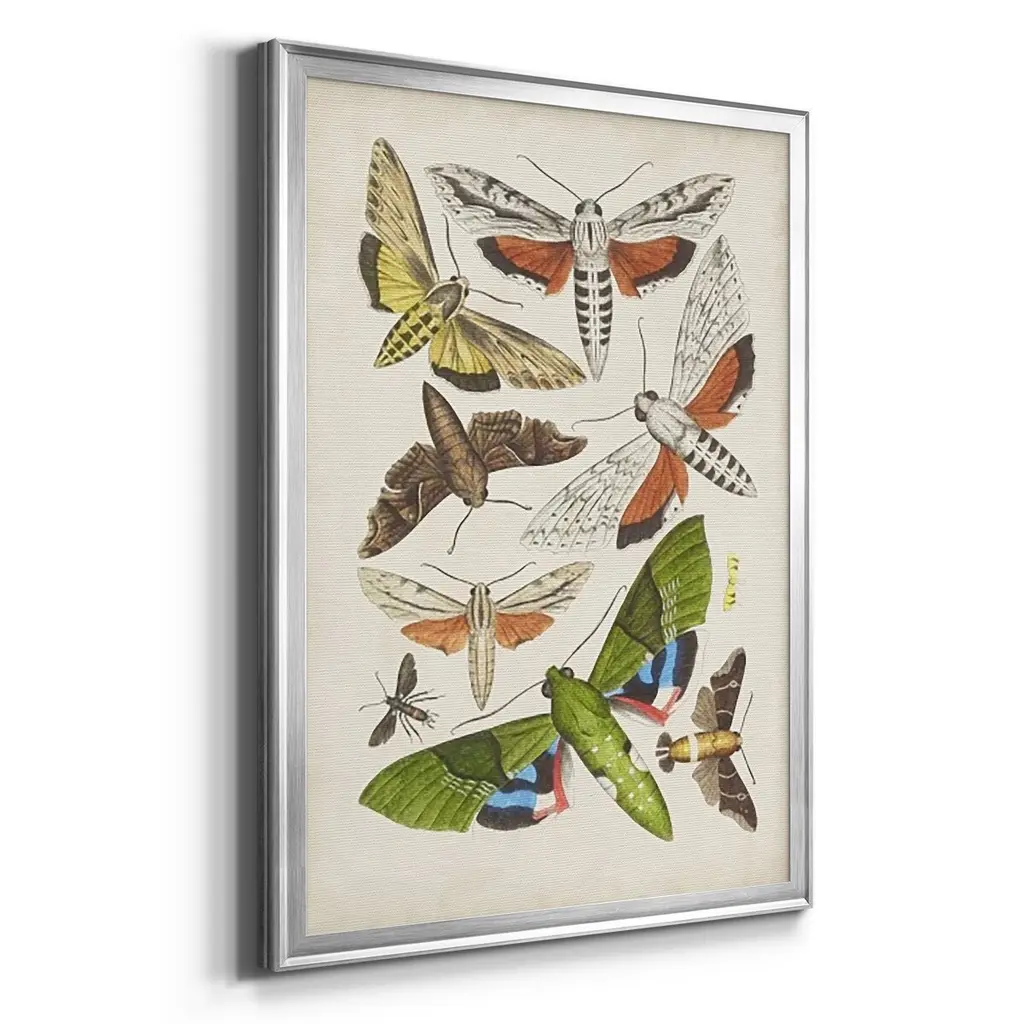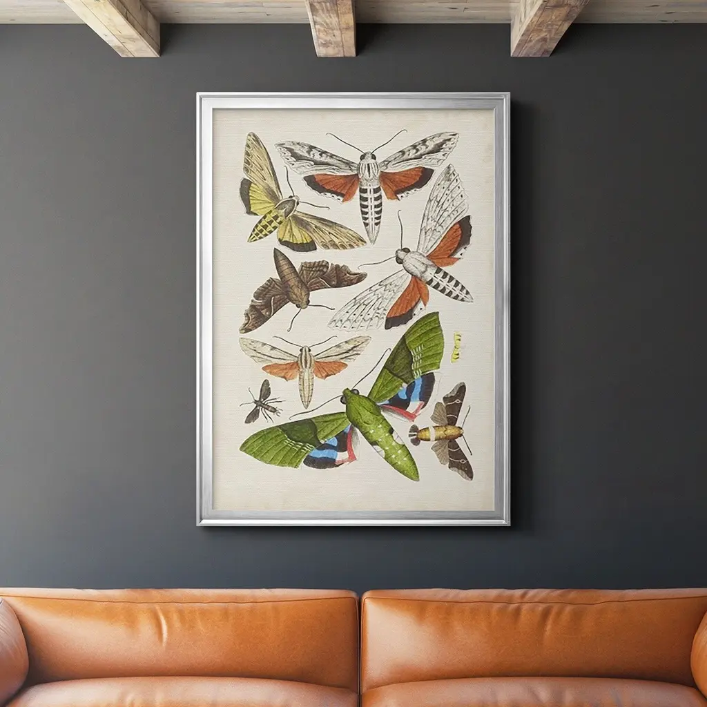 Antique Moths II Premium Framed Print - Ready to Hang A Premium Framed Print created to last. Framed in distressed wood and available in an array of sizes and colors Featuring a beveled a solid wood stretcher bar, each piece comes ready to hand 4 SIZES AVAILABLE 30.5''X42.5'' - Overall Size 26.5'X36.5'' - Overall Size 22.5''x30.5'' - Overall Size 18.5''x24.5'' - Overall Size Each piece is made to order. Each piece comes with hanging hardware. Made in the USA Ready to Hang