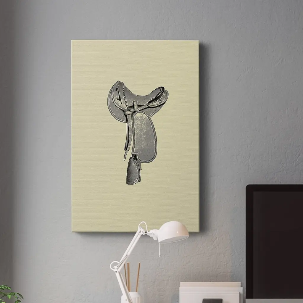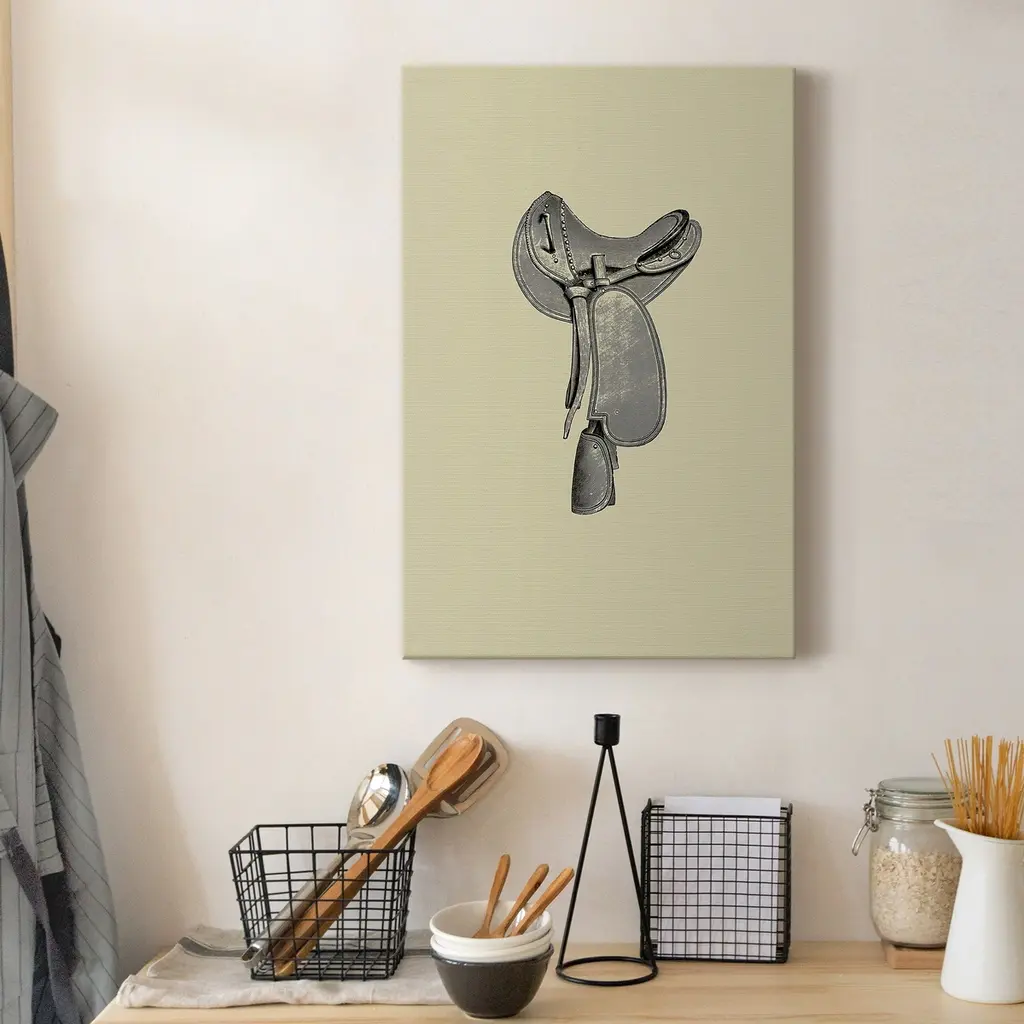 Antique Saddle I Premium Gallery Wrapped Canvas - Ready to Hang A premium hand stretched gallery wrapped canvas print created to last. Featuring a beveled a solid wood stretcher bar, each piece comes ready to hand 5 SIZES AVAILABLE 8''X12'' - Overall Size 16'X20'' - Overall Size 24''x32'' - Overall Size 30''x40'' - Overall Size 36''x48'' - Overall Size Each piece is made to order. Built to Last Each piece comes ready to hang Solid wood stretcher Fade and Water resistant Made domestically