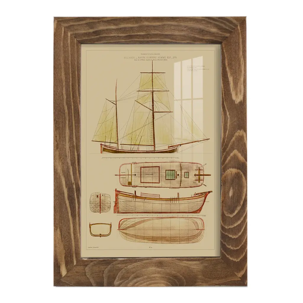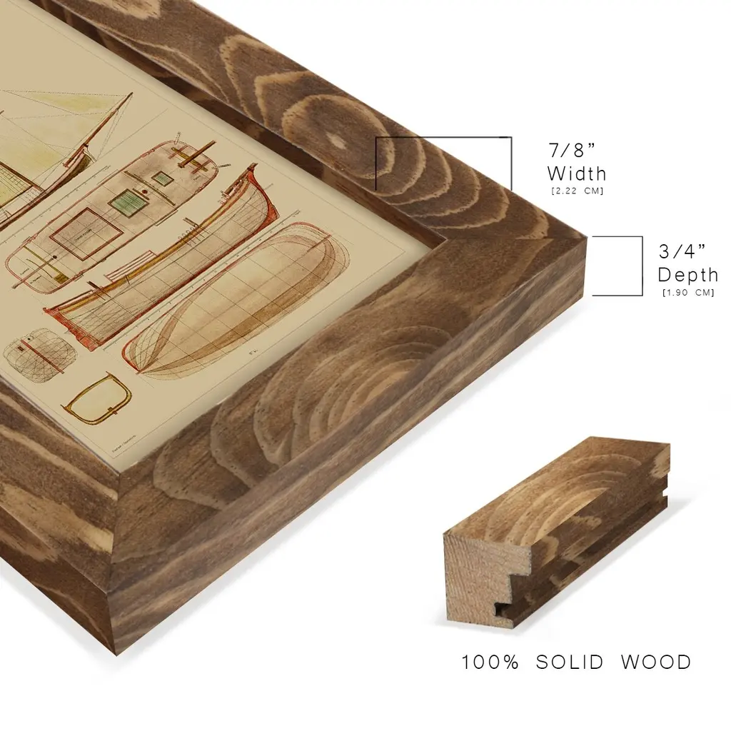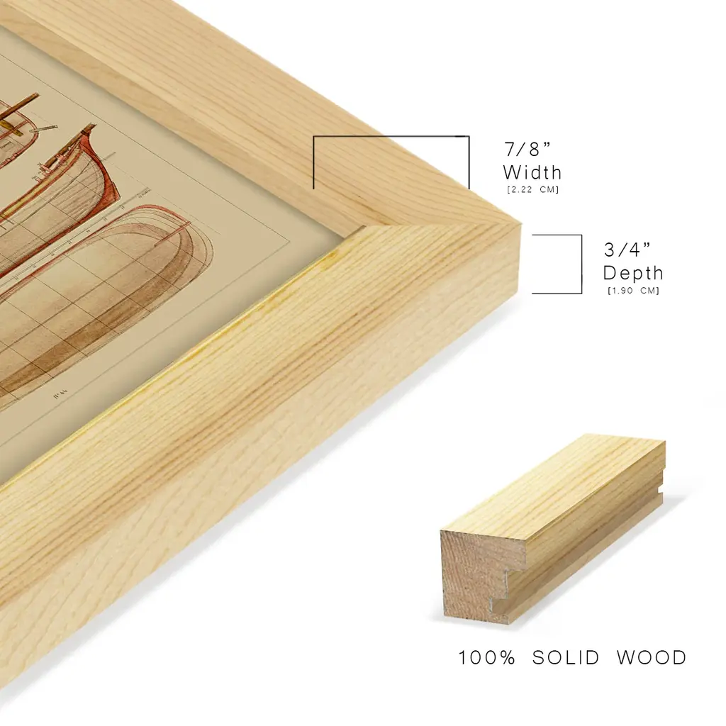 Antique Ship Plan IV -EZ SWITCH Framed Print w/glass-Cherry Red A delightful, framed print. Featuring a solid wood frame with real wood glass. This premium print is giclee quality. In addition, every frame features a removable back and table top stand. This allows you to change your art in the future or to just stand the art on a table for a new look. We are sure you'll enjoy our new series of EZ SWITCH Framed Art. Solid Wood Frame Real Glass Removable / Replaceable Art Built in Tabletop Stand Sizes range from 4x6 up to 12x15 - buy just one or pair them up as sets as you see fit.
