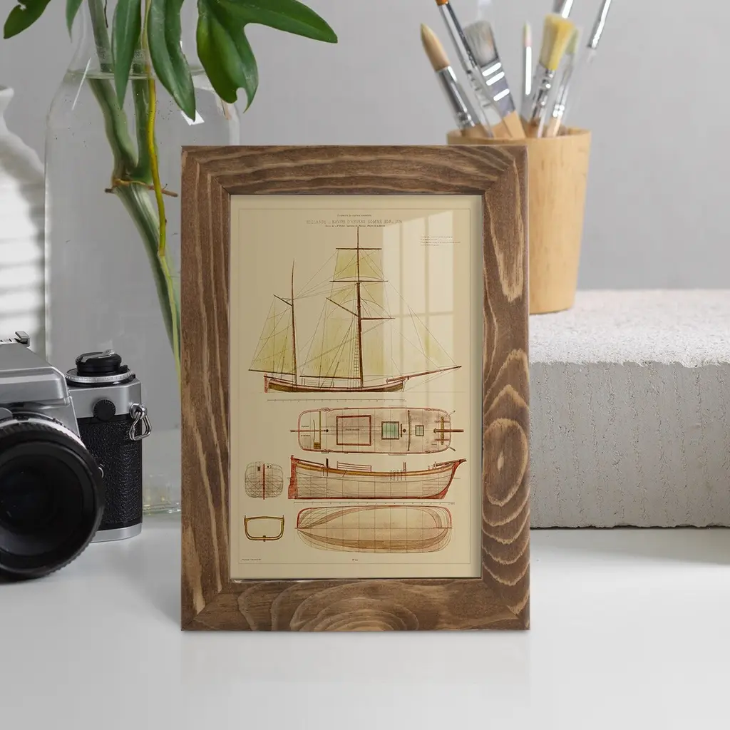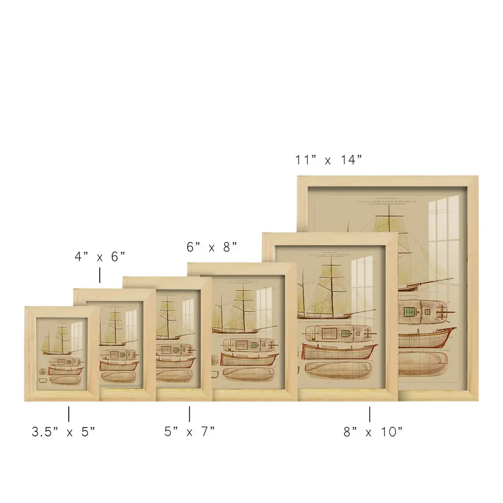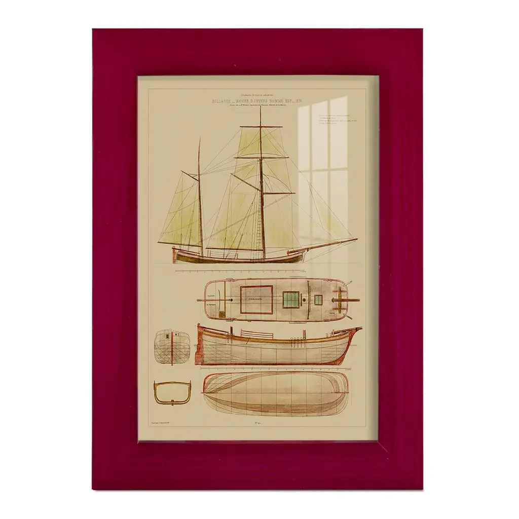 Antique Ship Plan IV -EZ SWITCH Framed Print w/glass-Cherry Red A delightful, framed print. Featuring a solid wood frame with real wood glass. This premium print is giclee quality. In addition, every frame features a removable back and table top stand. This allows you to change your art in the future or to just stand the art on a table for a new look. We are sure you'll enjoy our new series of EZ SWITCH Framed Art. Solid Wood Frame Real Glass Removable / Replaceable Art Built in Tabletop Stand Sizes range from 4x6 up to 12x15 - buy just one or pair them up as sets as you see fit.