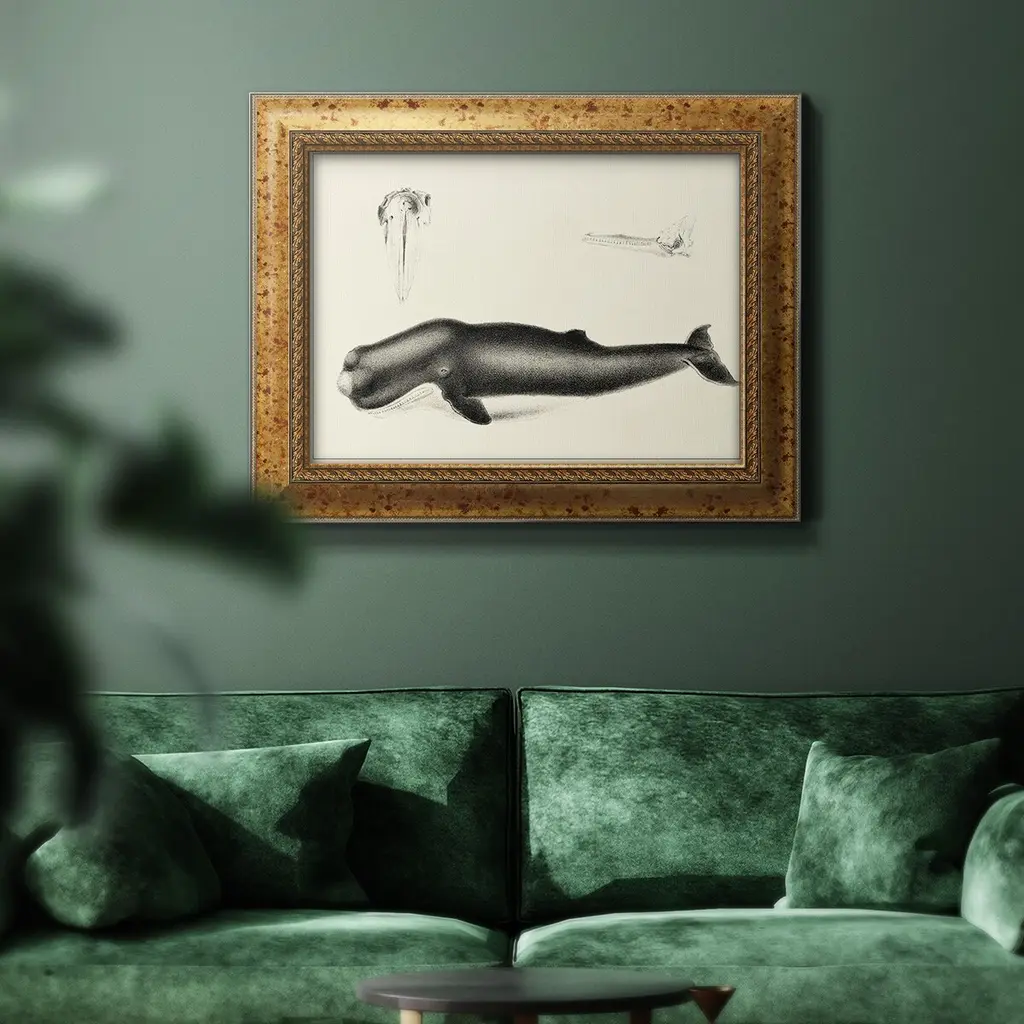 Antique Whale Study Ii Premium Framed Canvas- Ready To Hang - 16x20 - Gold