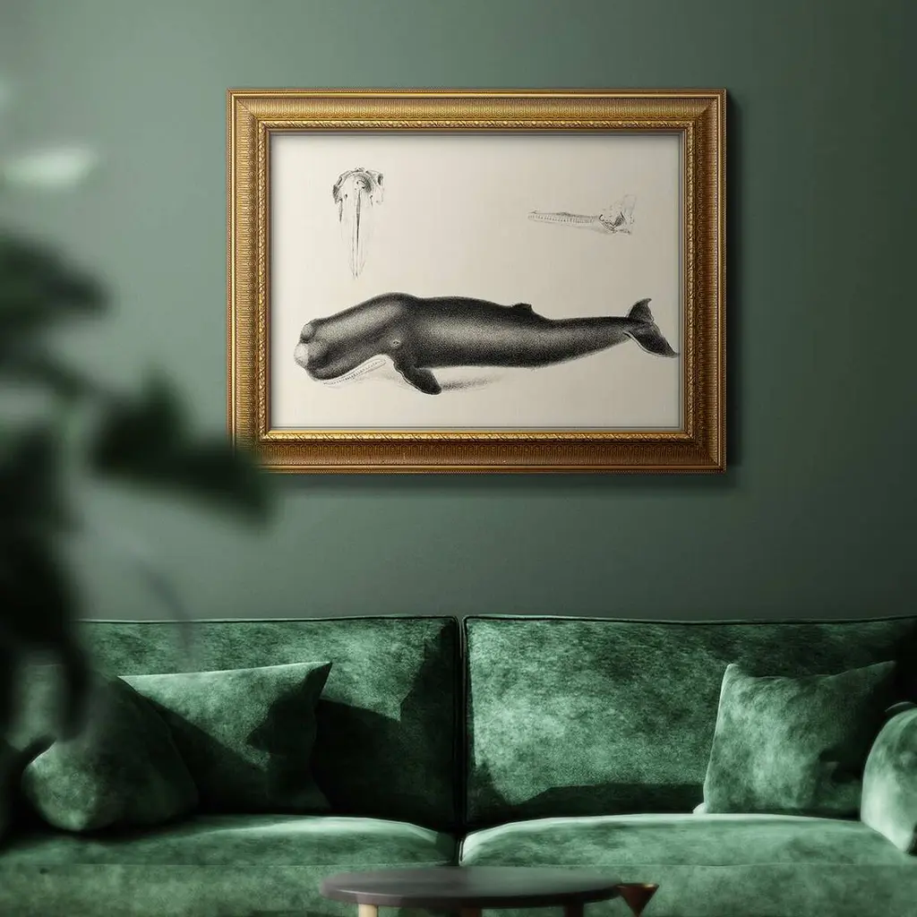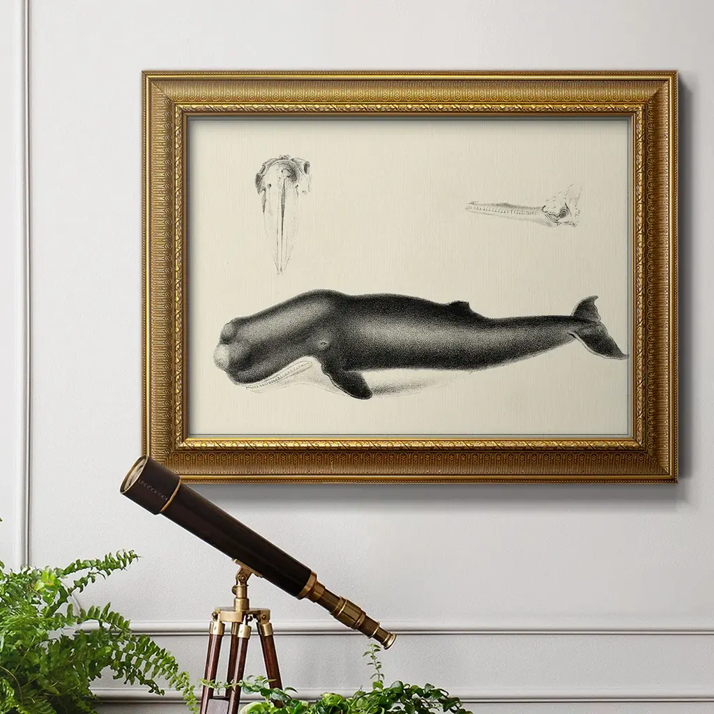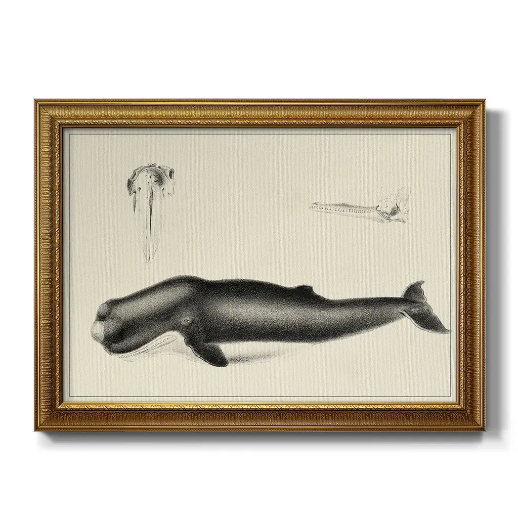 Antique Whale Study Ii Premium Framed Canvas- Ready To Hang - 16x20 - Gold