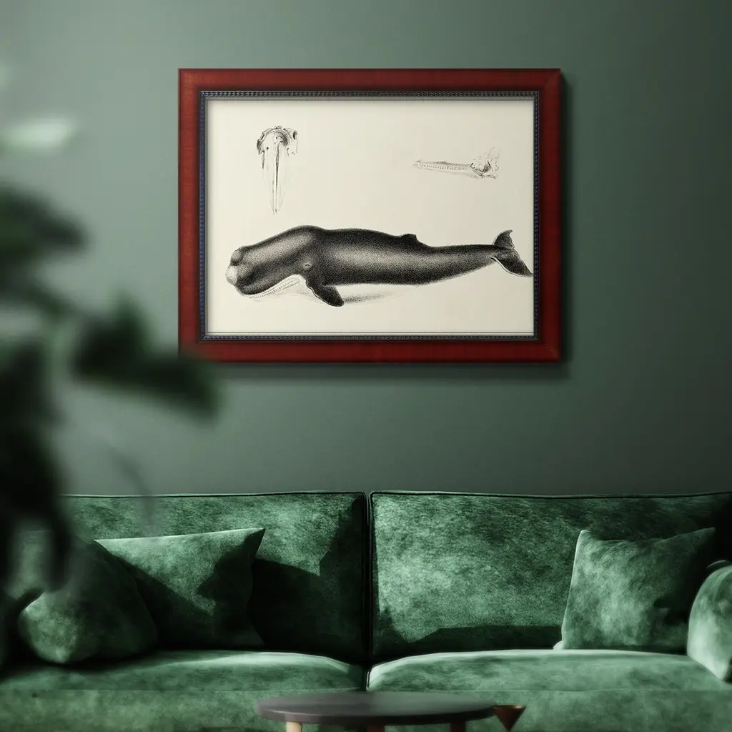 Antique Whale Study Ii Premium Framed Canvas- Ready To Hang - 24x36 - Mahogany