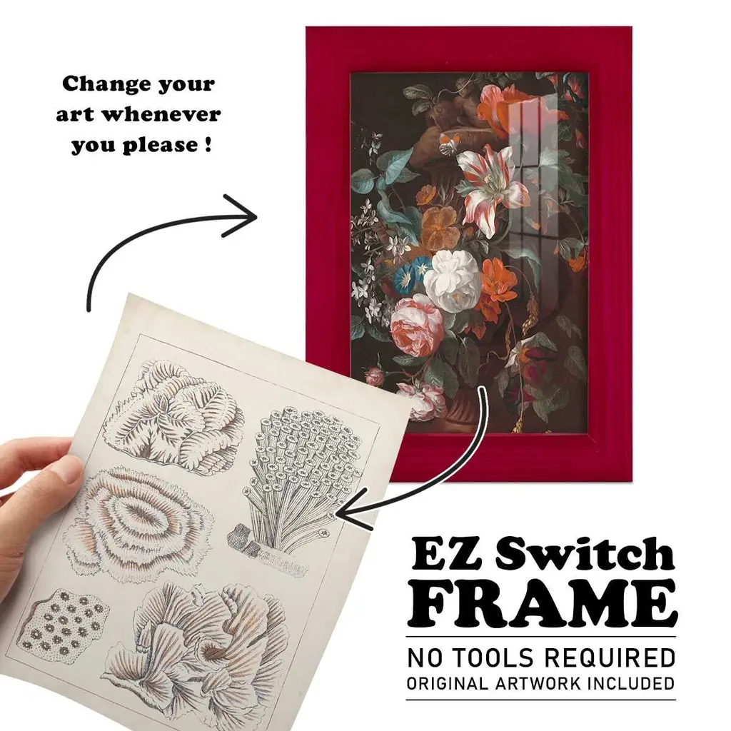 Antique White Coral I -EZ SWITCH Framed Print w/glass-Cherry Red A delightful, framed print. Featuring a solid wood frame with real wood glass. This premium print is giclee quality. In addition, every frame features a removable back and table top stand. This allows you to change your art in the future or to just stand the art on a table for a new look. We are sure you'll enjoy our new series of EZ SWITCH Framed Art. Solid Wood Frame Real Glass Removable / Replaceable Art Built in Tabletop Stand Sizes range from 4x6 up to 12x15 - buy just one or pair them up as sets as you see fit.