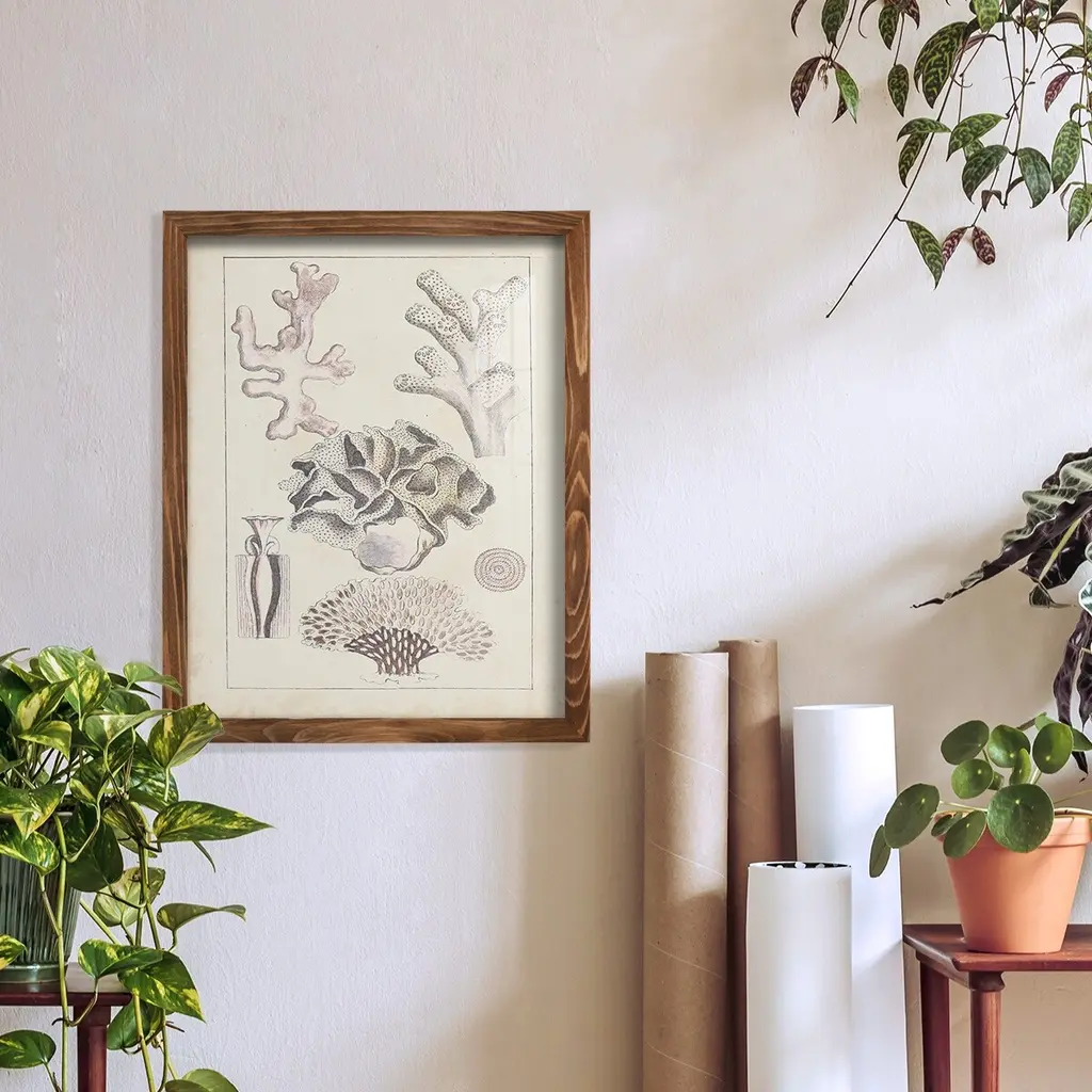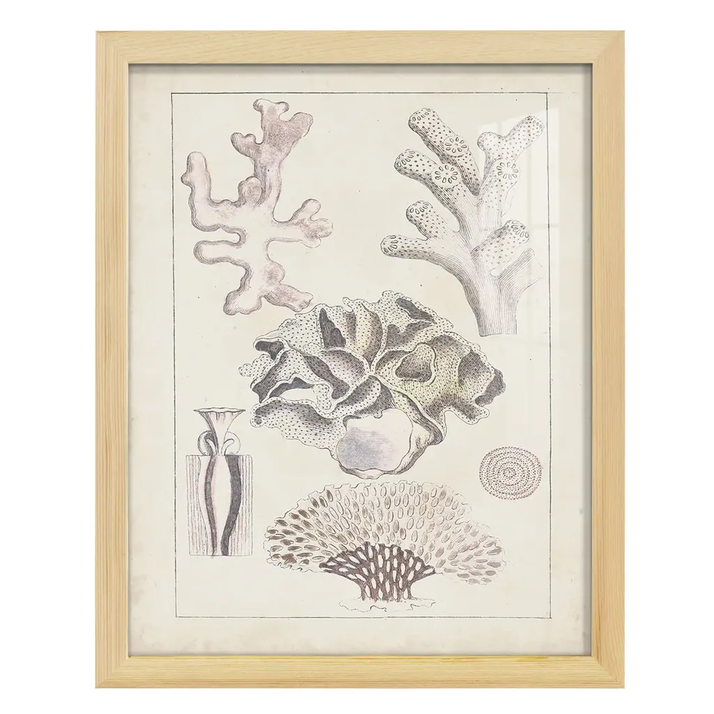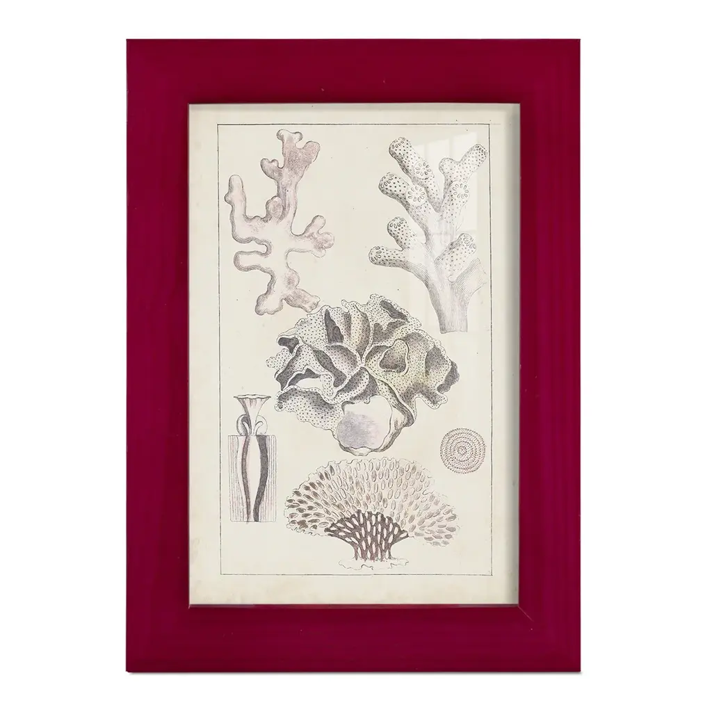 Antique White Coral Iv -Framed Print W/glass-Cherry Red - 12x15 - Maple