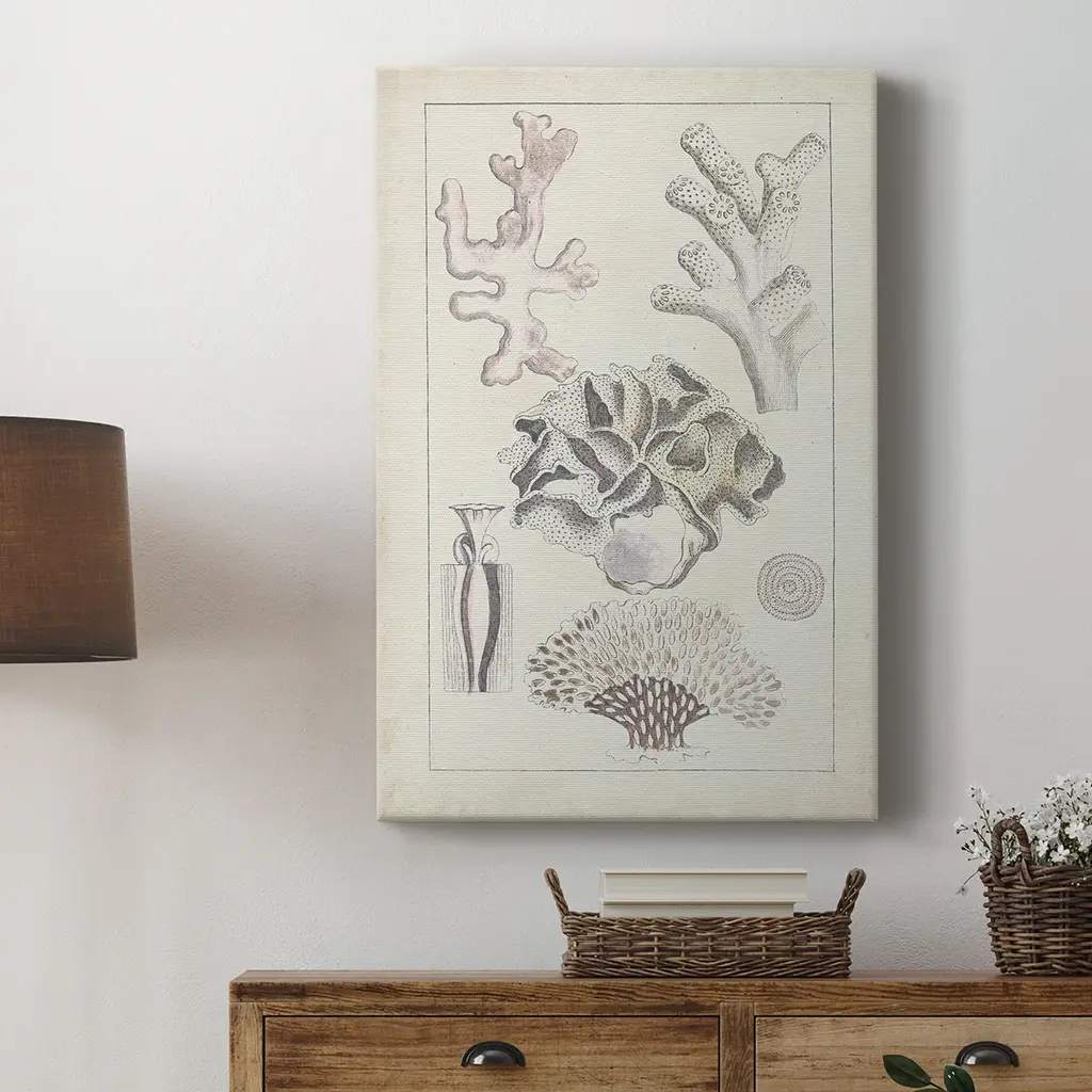 Antique White Coral IV Premium Gallery Wrapped Canvas - Ready to Hang A premium hand stretched gallery wrapped canvas print created to last. Featuring a beveled a solid wood stretcher bar, each piece comes ready to hand 6 SIZES AVAILABLE 8''X12'' - Overall Size 12''X18'' - Overall Size 18''X27'' - Overall Size 24''x36'' - Overall Size 32''x48'' - Overall Size 40''x60'' - Overall Size Each piece is made to order. Built to Last Each piece comes ready to hang Solid wood stretcher Fade and Water resistant Made domestically