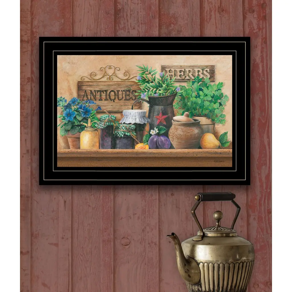 Bring some sizzle to your space with this eye-catching antiques and herbs 2 black framed print wall art. This print is a visual artistic expression that allows you to decorate your space in style. Reproduced for you on paper, this hanging decorative accent will be a trendy and fashionable way to dress your walls. Adding this hanging wall art to your space to make your room feel more finished and attractive. Instantly liven up your space with this art that brings color and dimension to your walls. 11" H x 15" W x 1" D