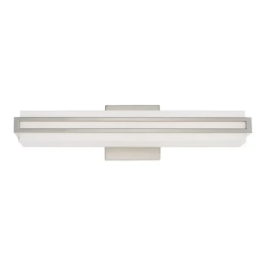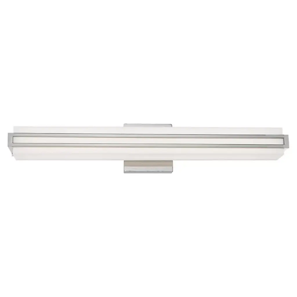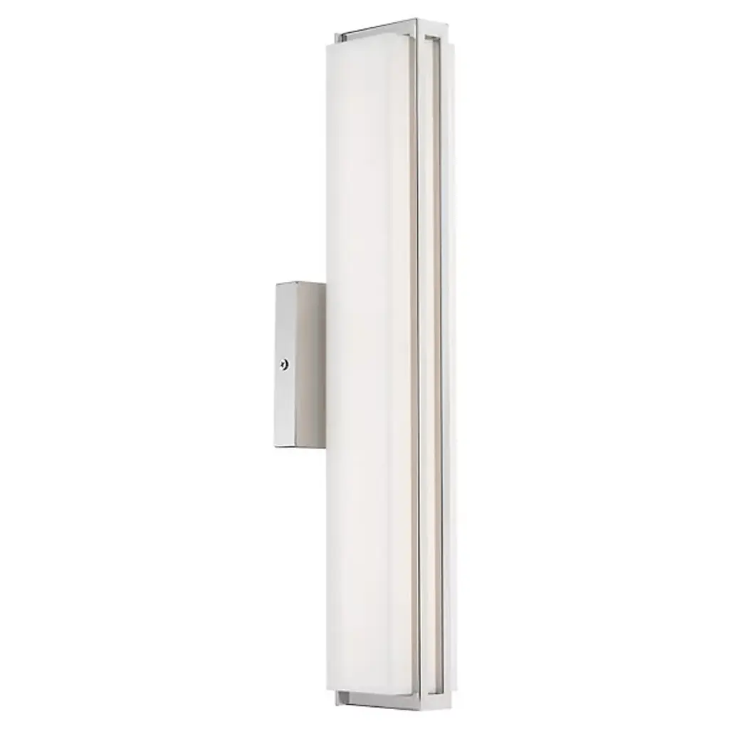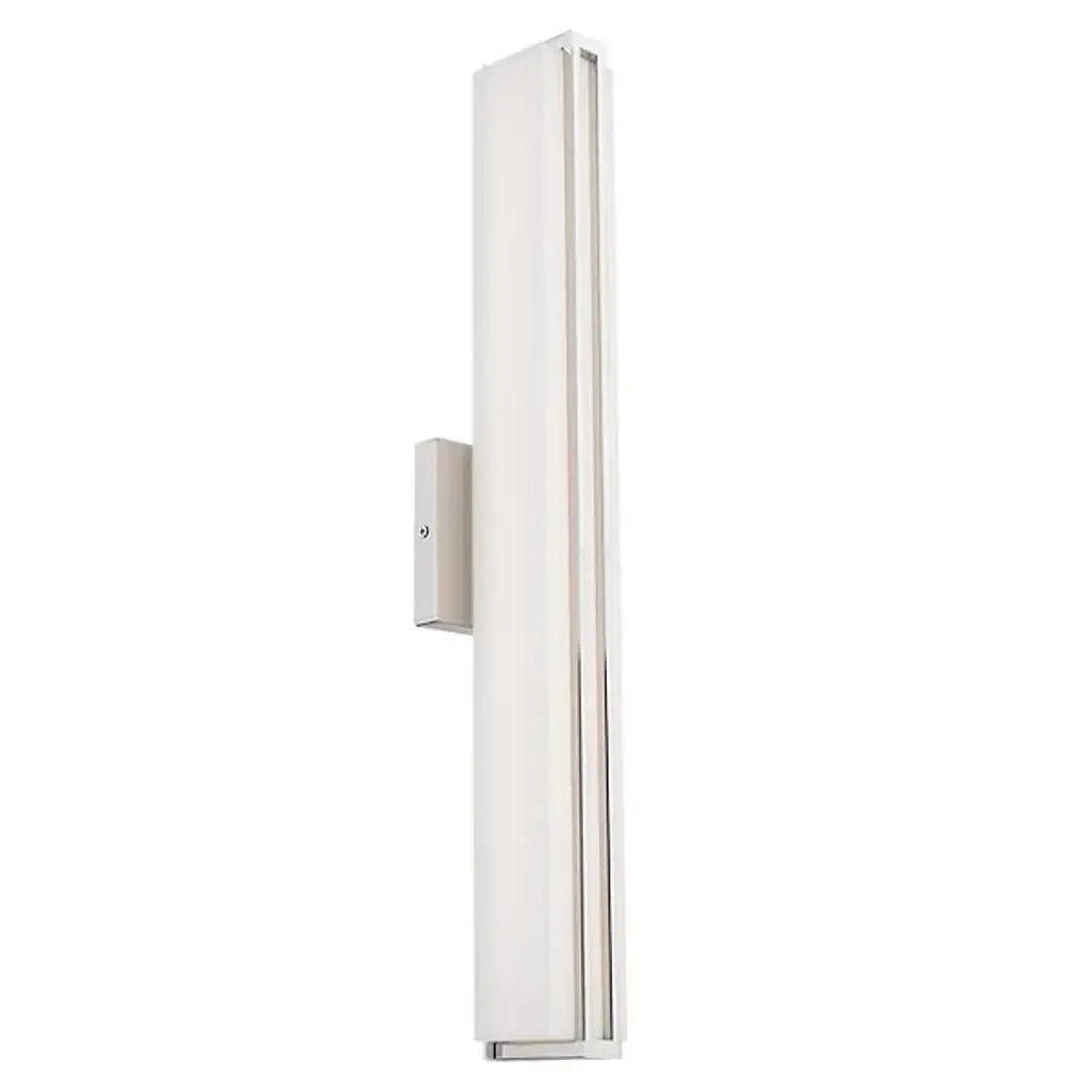 Sleek and soothing. The Anton LED Vanity Light from Alder & Ore satisfies the practical lighting needs of the bathroom in a clean, arrangeable design. The modern piece presents a calculated look. A compact square backplate lets the piece mount horizontally over the top of a mirror or vertically on the sides. A slim metal frame wraps over the top, adding a dash of contrasting color. A long acrylic shade backs the frame with an opaque surface and a soft, uniform light.