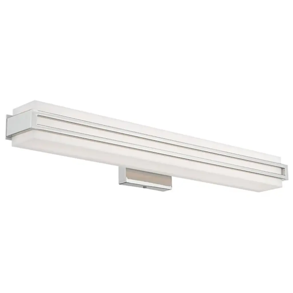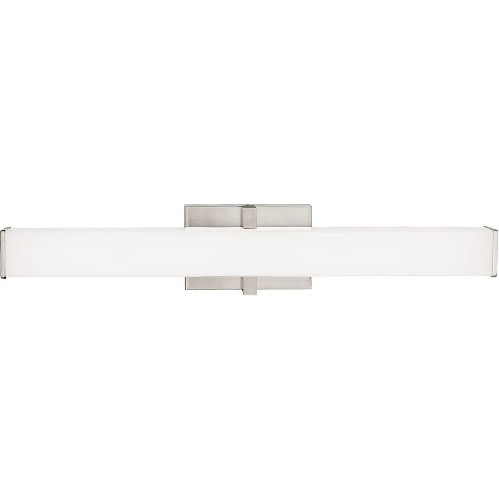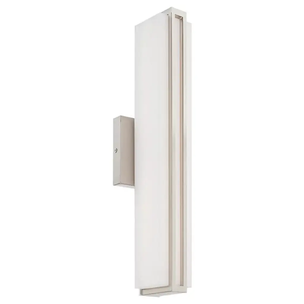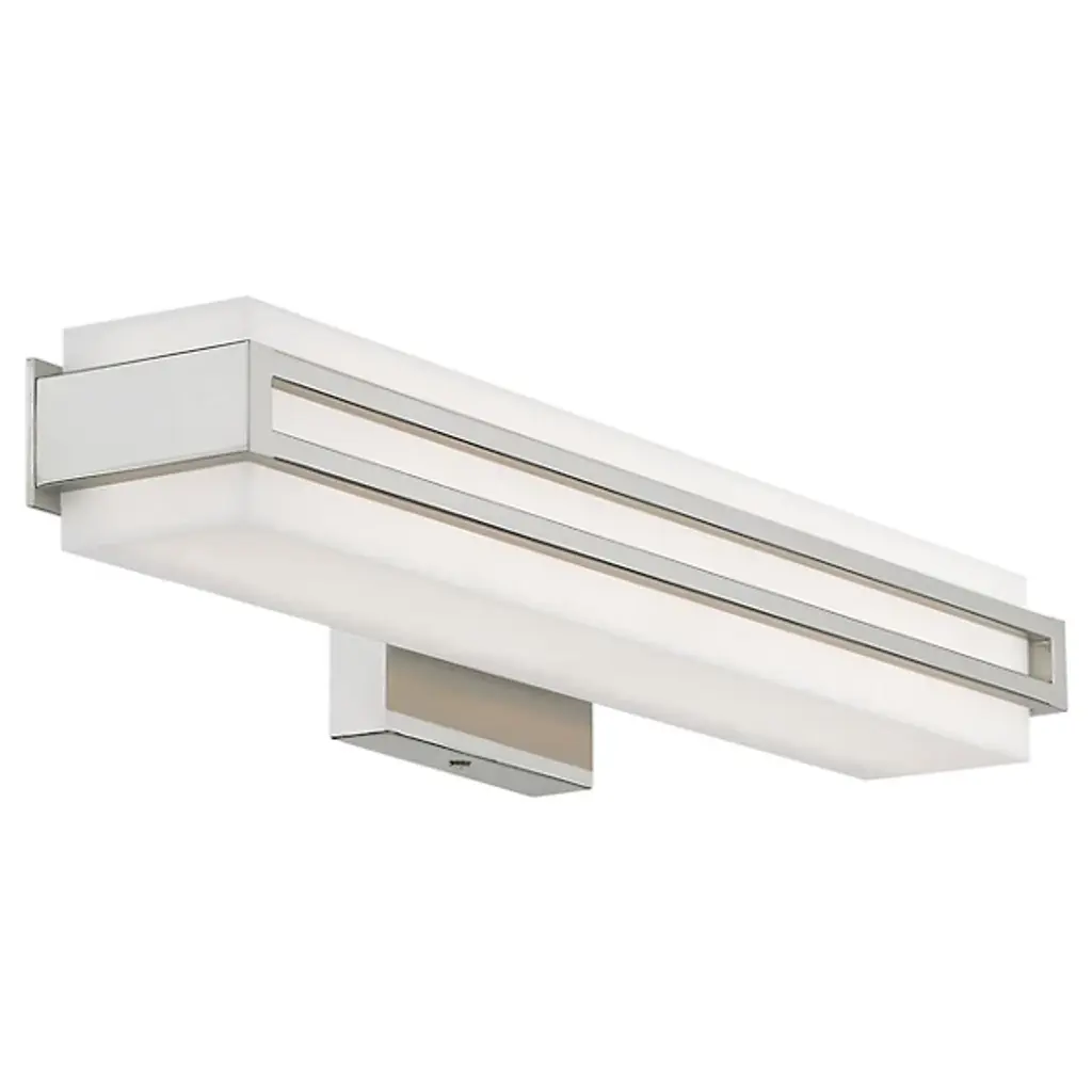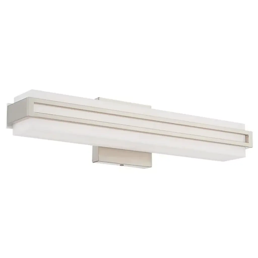 Sleek and soothing. The Anton LED Vanity Light from Alder & Ore satisfies the practical lighting needs of the bathroom in a clean, arrangeable design. The modern piece presents a calculated look. A compact square backplate lets the piece mount horizontally over the top of a mirror or vertically on the sides. A slim metal frame wraps over the top, adding a dash of contrasting color. A long acrylic shade backs the frame with an opaque surface and a soft, uniform light.