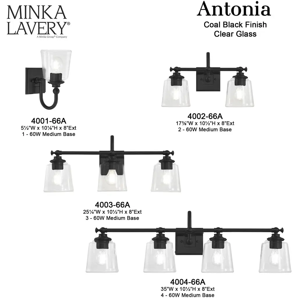 This 2 light Bath Vanity Light from the Antonia collection by Minka-Lavery will enhance your home with a perfect mix of form and function. The features include a Coal Black finish applied by experts. This item qualifies for free shipping!