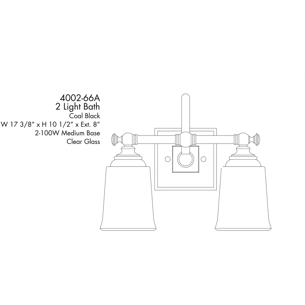 Antonia 2 Light 17.38 Inch Coal Black Bath Vanity Light Wall Light
