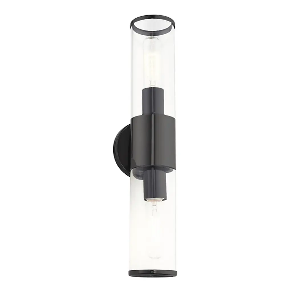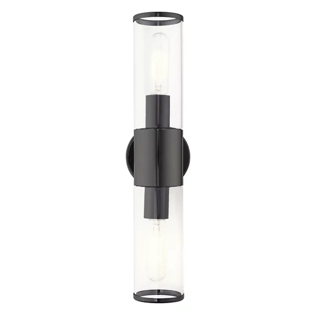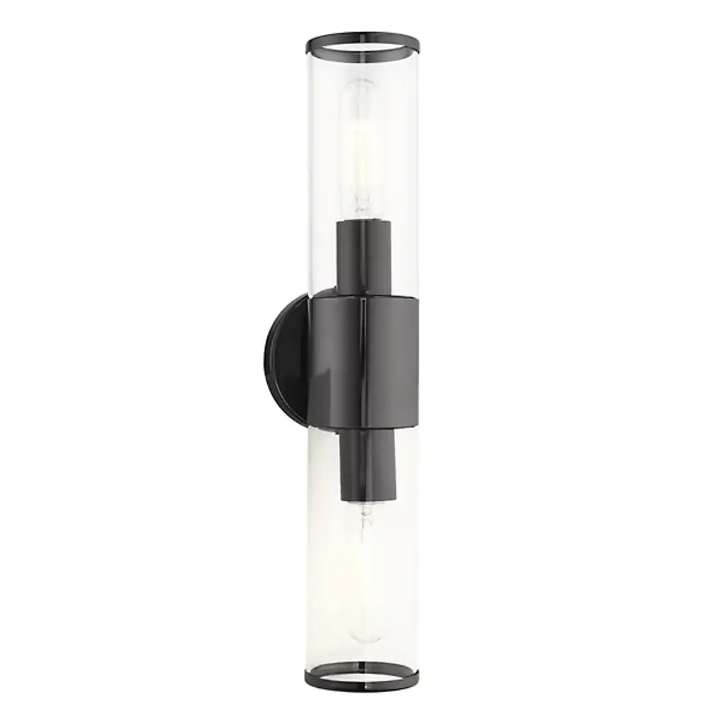 A clean silhouette designed to work with a range of home décor choices. The Antonio Vanity Light from Alder & Ore mounts directly to the wall with a round base made of smooth metal that extends a matching band around a cylinder of clear glass. The cylinder contains a set of bulbs, each facing opposite directions to ensure a full glow reaches through the room. The light diffuses with ease, creating a bright and even demonstration of light.