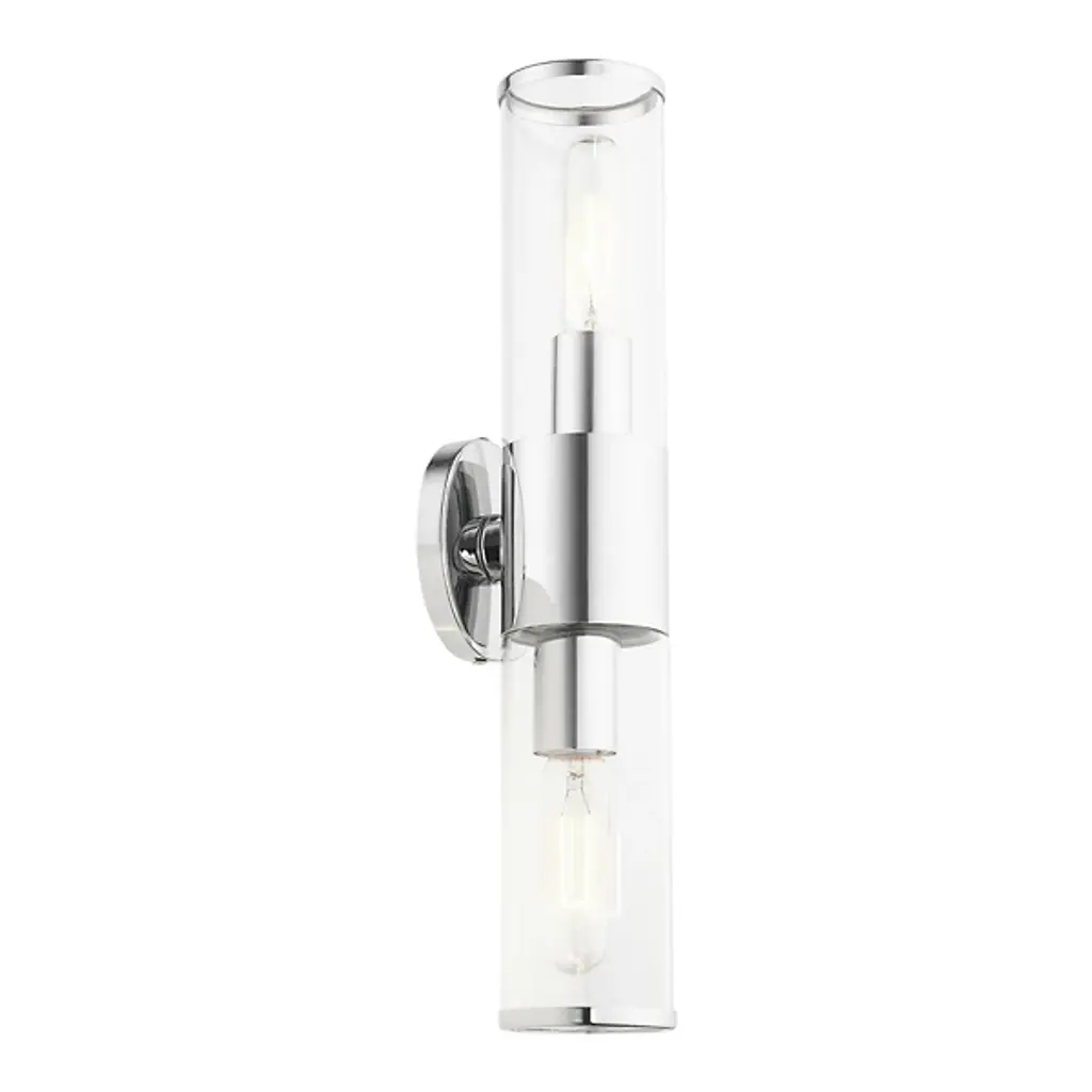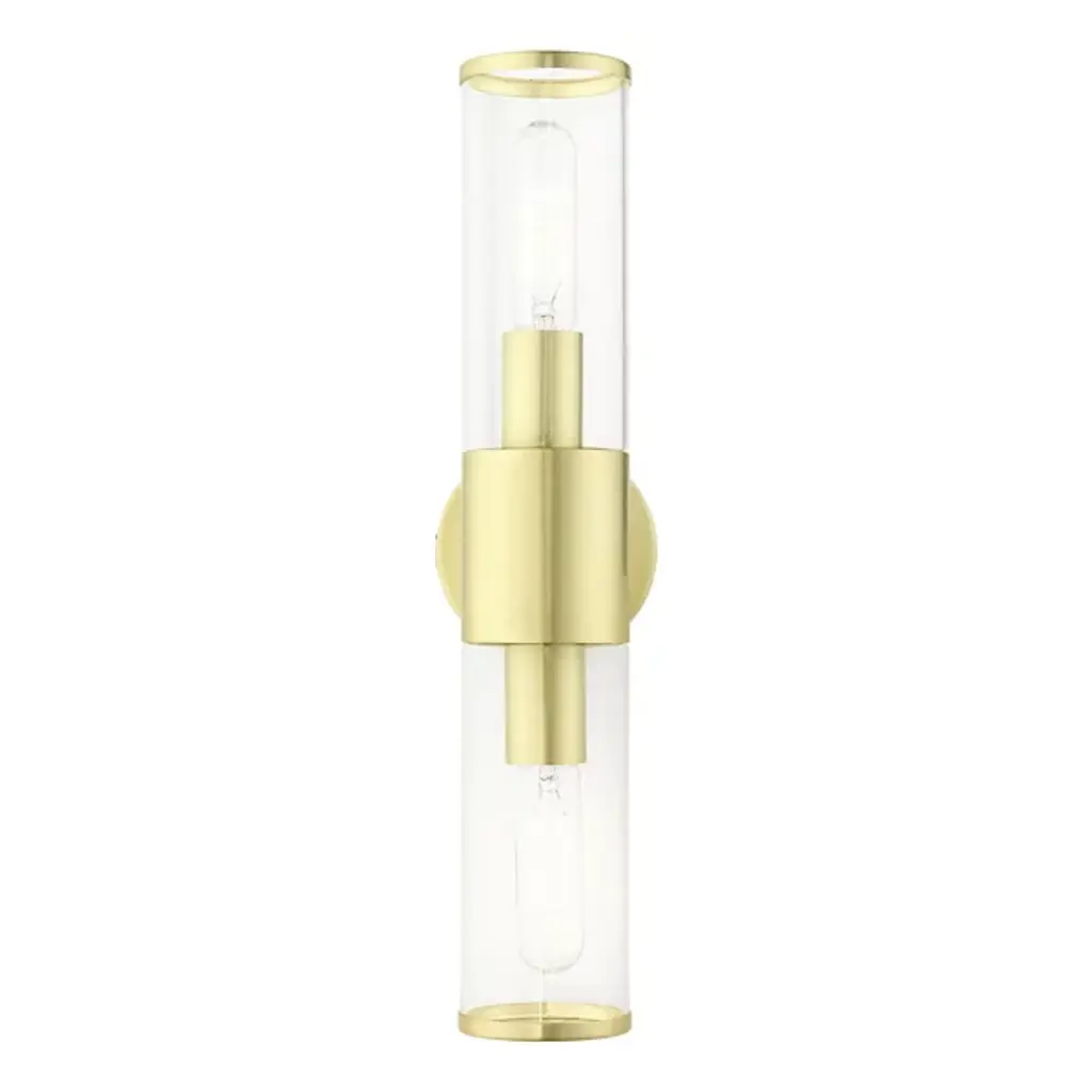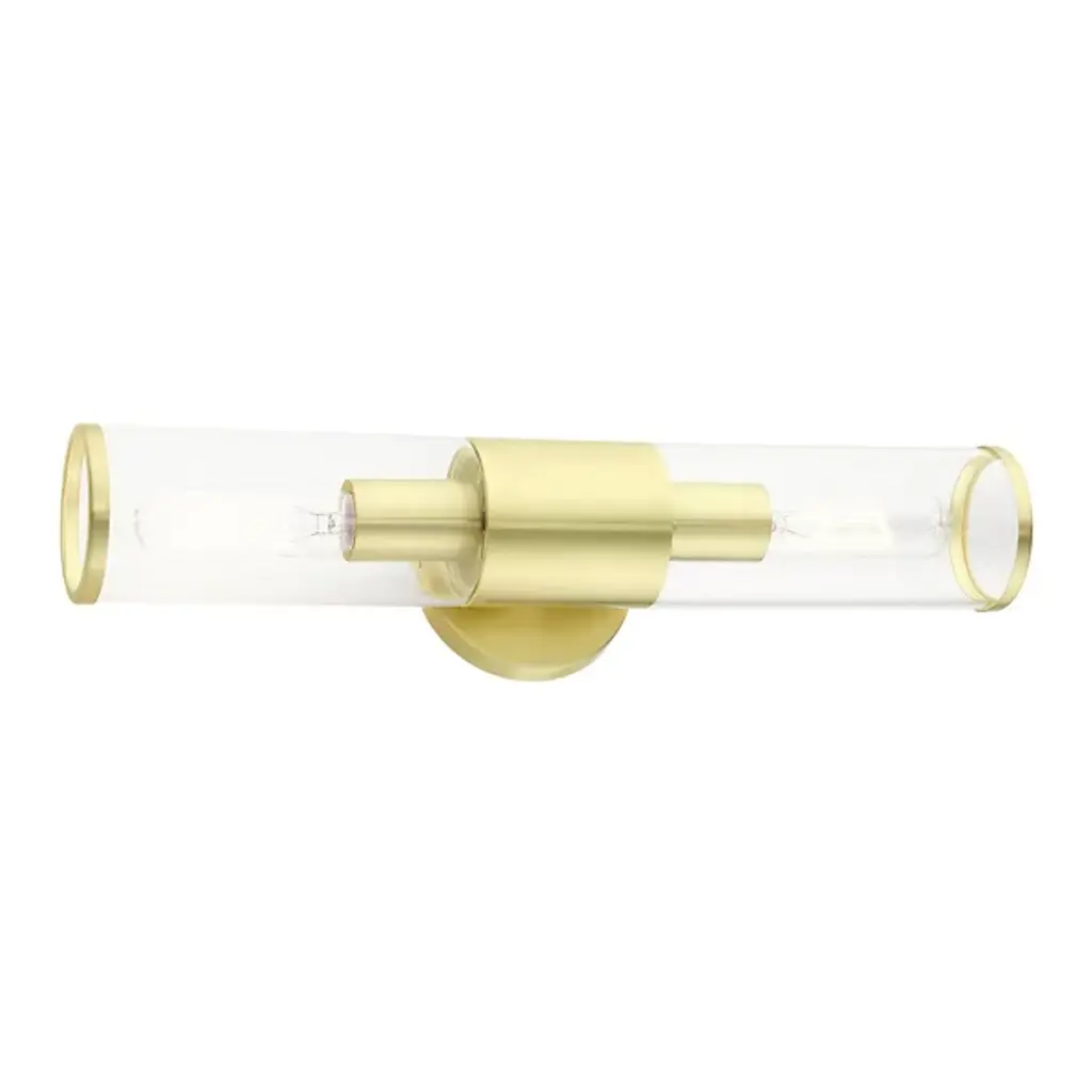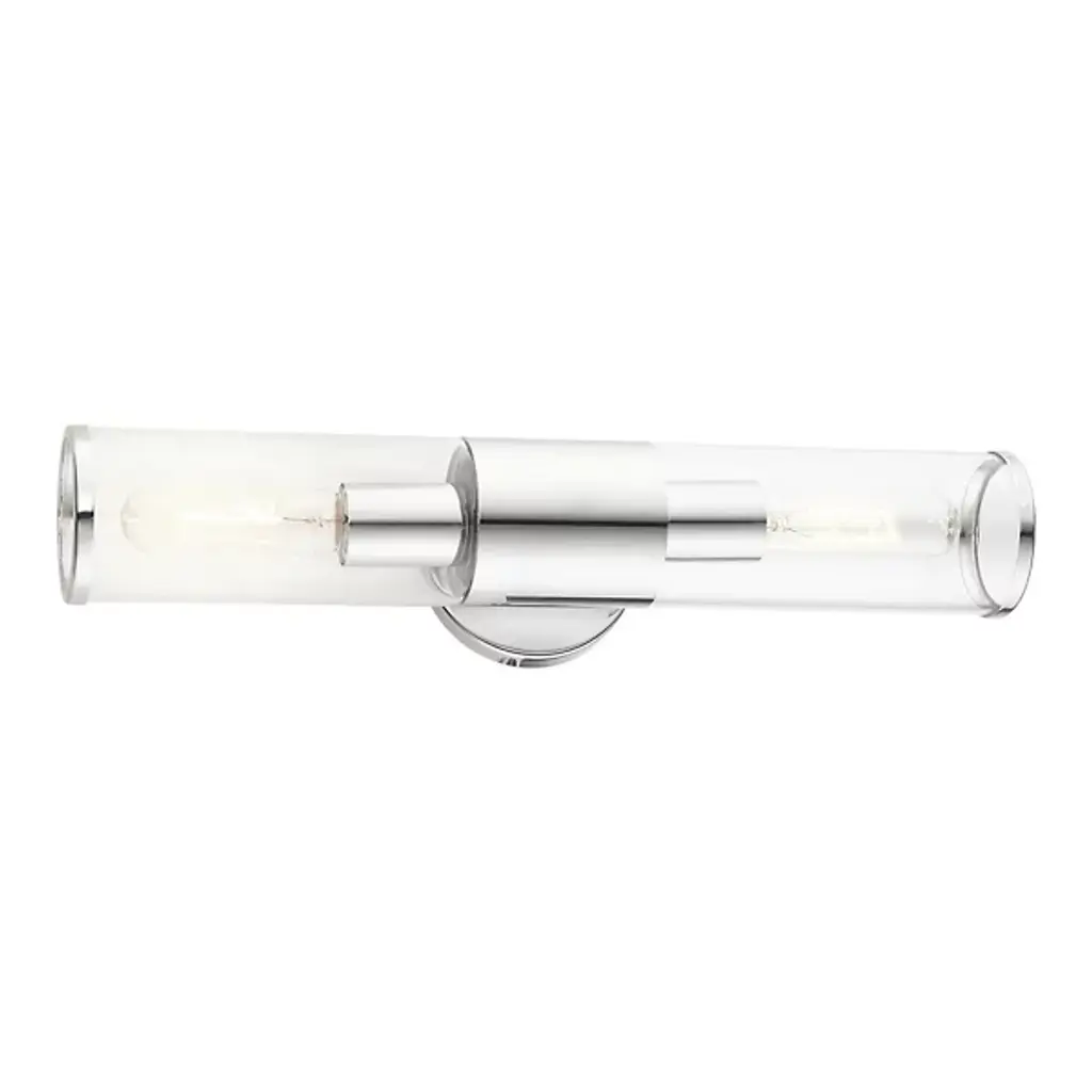 A clean silhouette designed to work with a range of home décor choices. The Antonio Vanity Light from Alder & Ore mounts directly to the wall with a round base made of smooth metal that extends a matching band around a cylinder of clear glass. The cylinder contains a set of bulbs, each facing opposite directions to ensure a full glow reaches through the room. The light diffuses with ease, creating a bright and even demonstration of light.