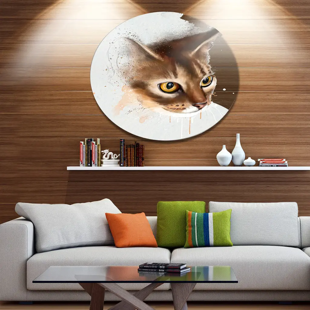 Bring Contemporary Abstraction to your home with this large Circle Metal wall art. This Anxious Brown Cat Watercolor Sketch Metal Artwork makes it the focal point of any room or office. - White Gloss Coating ensures colors are extra vibrant with light reflection.- Aluminum grade Sheet Metal with 1 inch mounting frame on the back giving the illusion that the artwork is floating on the wall..- Mounting Brackets are included along with instructions.- High Quality Digital images are created directly into a glossy aluminum panel producing a stunning and captivating print into the glossy finish of the metal.- Water, Fire and Scratch resistant HD Aluminum panels.- Looks better than any photo paper and guaranteed to last at least 20 years- Easy to clean with a microfiber cloth. Colors are far superior to regular Canvas Art. - Easy to Hang