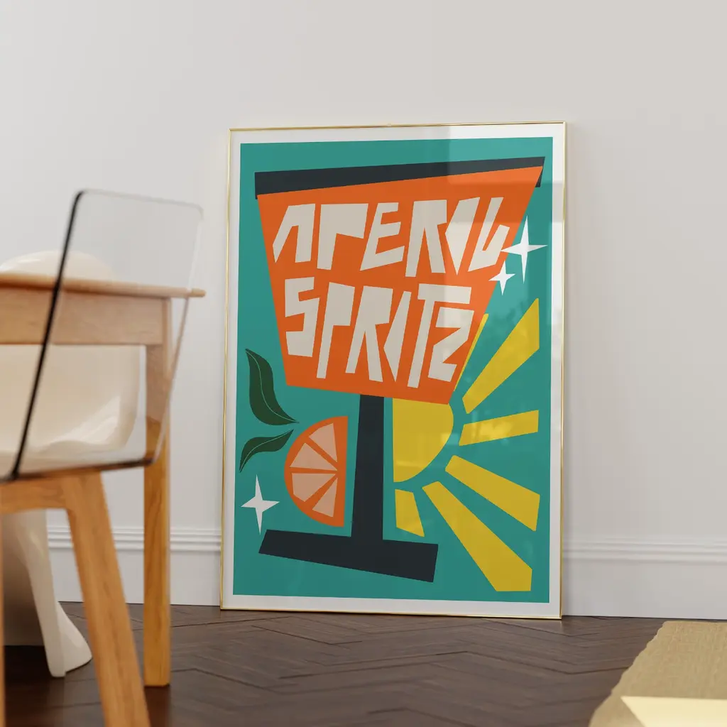 Aperol Spritz Print - A2 sizePerfect for cocktail enthusiasts, this captivating artwork captures the essence of the beloved aperol spritz cocktail. Elevate your home bar or kitchen décor with this stylish piece. All prints are digitally designed by myself and printed to order.Smooth fine art 230 gsm matte card. Printed with vivid colour and detail. Sold without a frame.