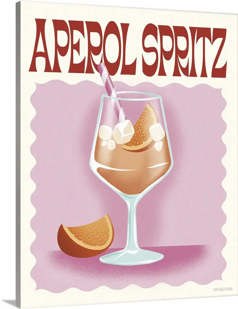 Giclee fine art print illustrated by Abi Overland.The Aperol Spritz is my interpretation of the beautiful and classic vintage Art Deco cocktail print ads. The Aperol Spritz is an Italian aperitif, originally created in 1919 by bartender Raimondo Ricci. The drink was invented as a means to combat the heat and humidity of Italy’s summer months. It became popular among people who wanted something light to sip on before dinner. However, The Aperol Spritz cocktail appears to trace back to the 1800s in northeastern Italy's Veneta region when Austrian soldiers visiting Italian wine producers added water to make a drink lighter.