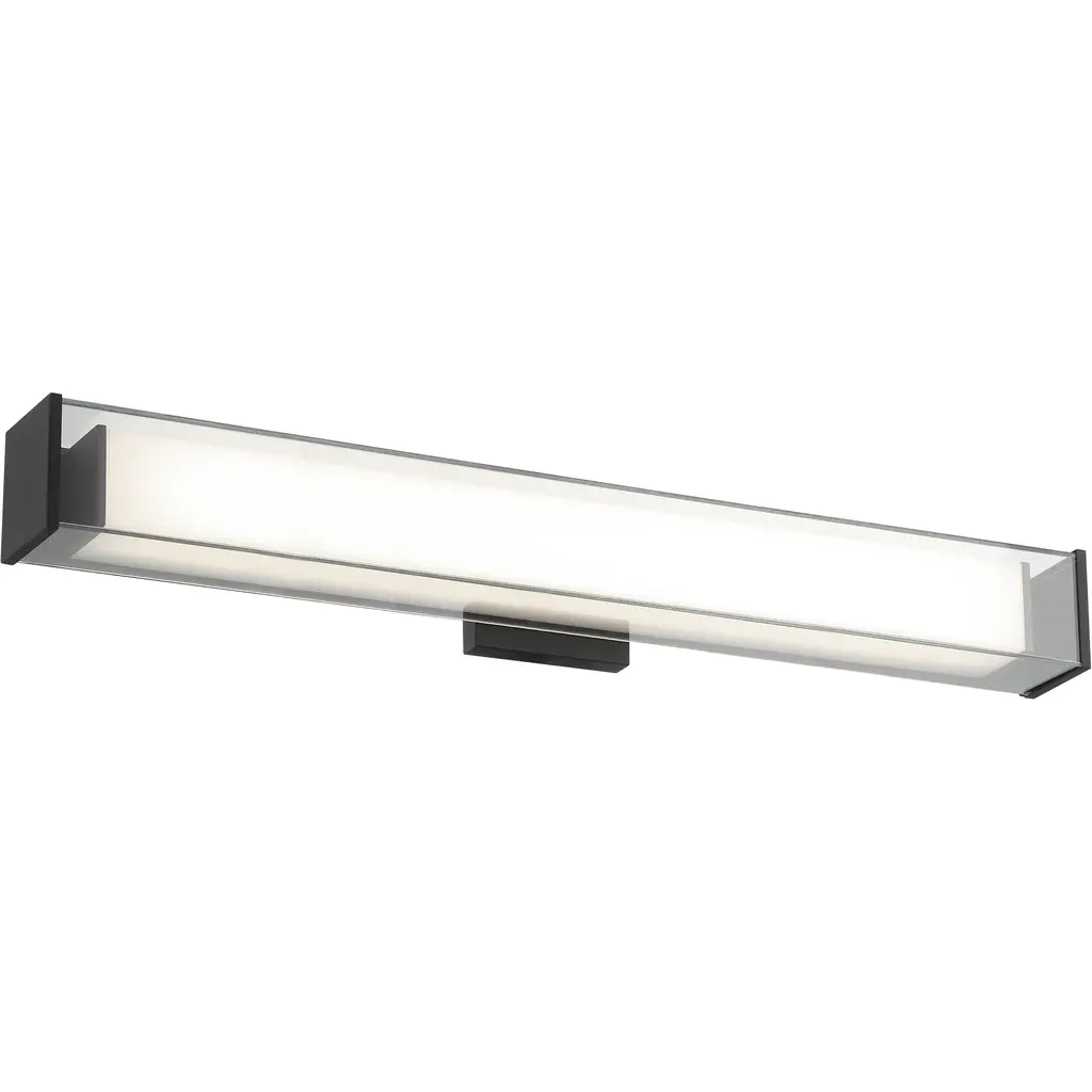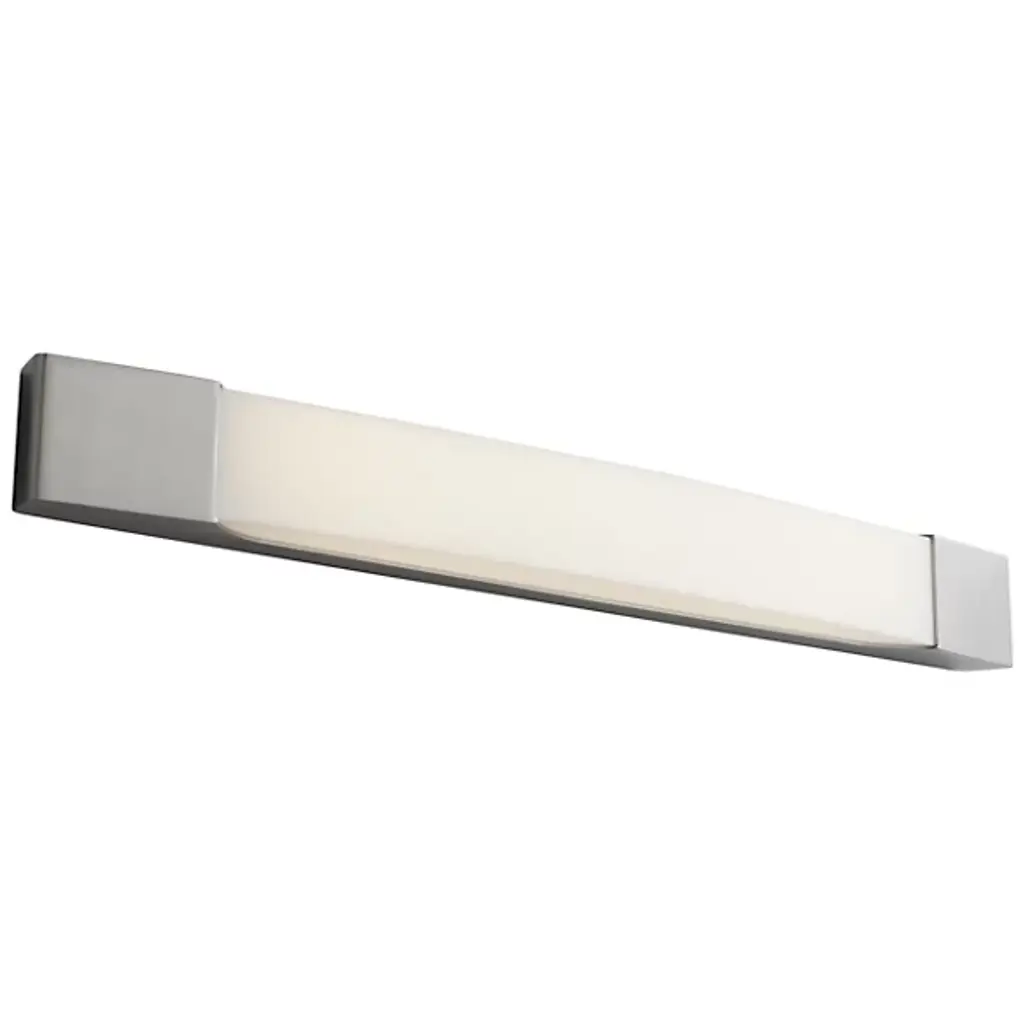 Simple, practical, and sleek. The Apollo LED Vanity Light from Oxygen Lighting is a modern and minimal bathroom lighting option. A frame of cold-rolled steel wraps around a matt white acrylic diffuser, illuminating the space with energy-efficient ambient lighting. Lit with state of the art lighting technology, LEDs are far more energy-efficient than traditional bulbs for providing the same amount of lumens output. Depending on your needs or preference, this product can be mounted either vertically or horizontally.