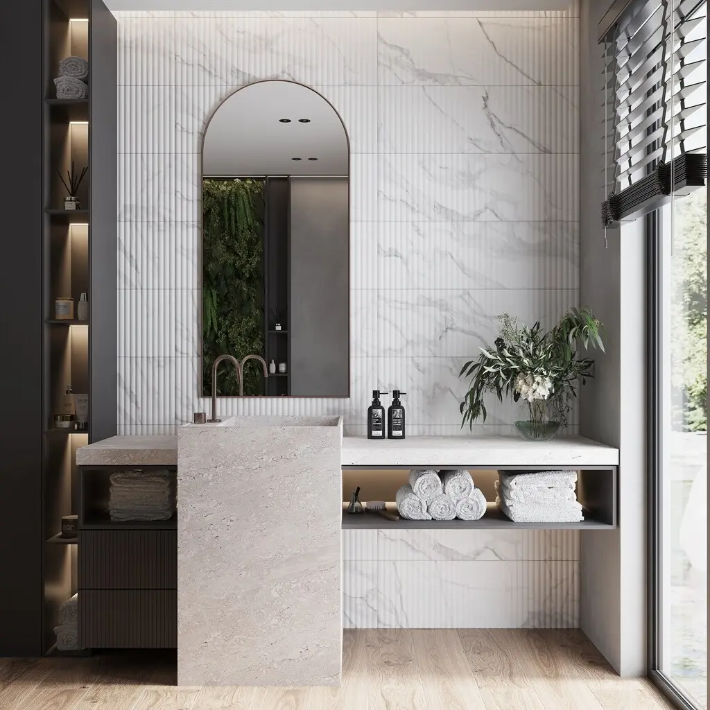 Are you looking to add an elegant and sophisticated look to your indoor or outdoor space? Look no further than the white fluted matte finish ceramic tile! This white ceramic tile is a popular choice for a wide variety of design projects. It is the perfect addition for any residential or commercial setting, such as bathrooms, showers, kitchen backsplashes, steam rooms, garages, hotels and restaurants. Not only will this white tile bring your chosen area to life with its matte finish but it also offers an easy-to-maintain yet durable surface that you can rely on for years to come. Disclaimers & Disclosures: Please be aware that if you order more than 151 pounds of tile or flooring, the order may need to be shipped by a freight carrier. If so, our Oversized Item Delivery and Return policy will apply.
