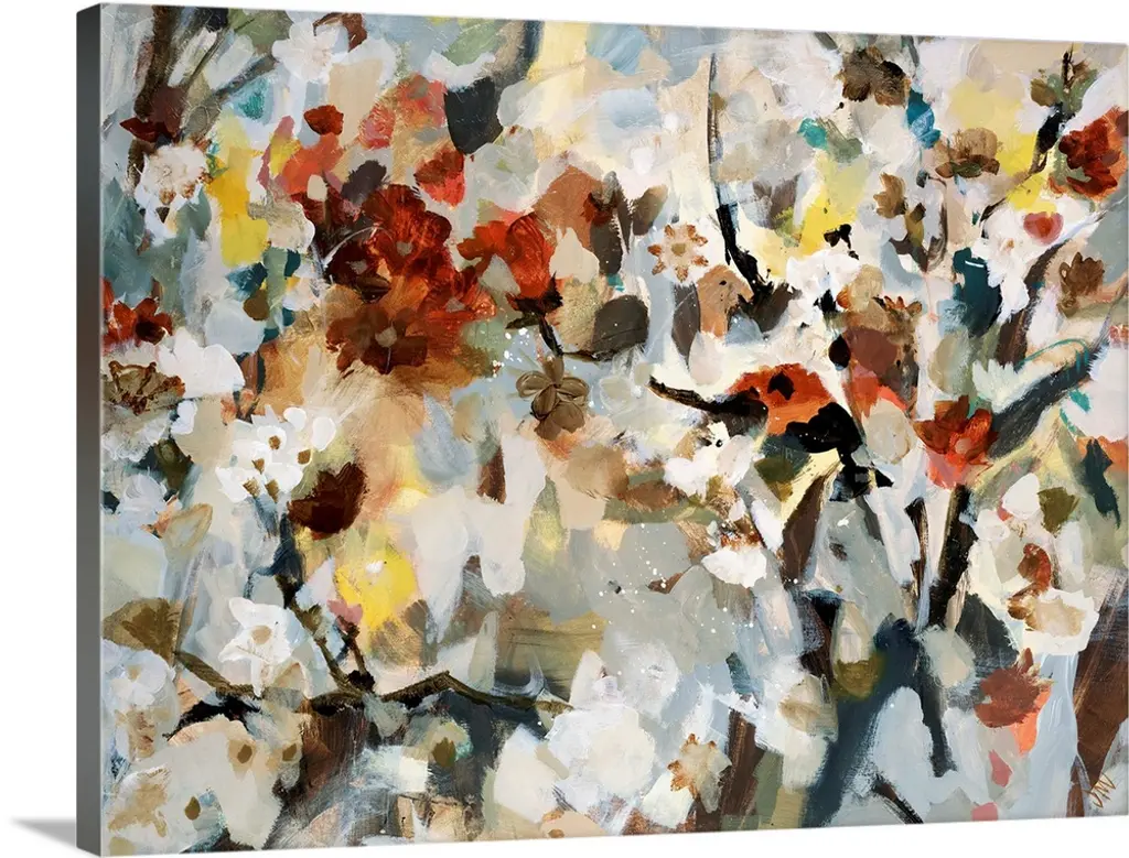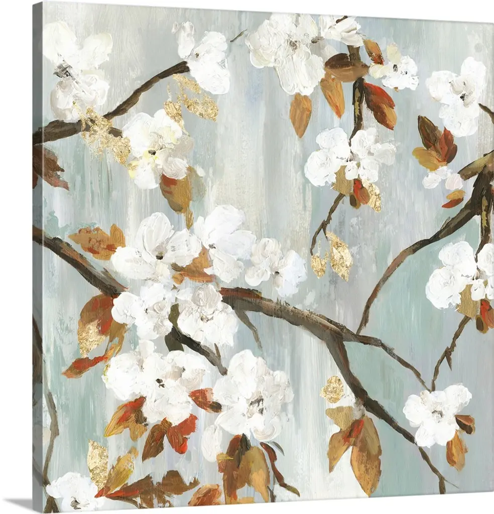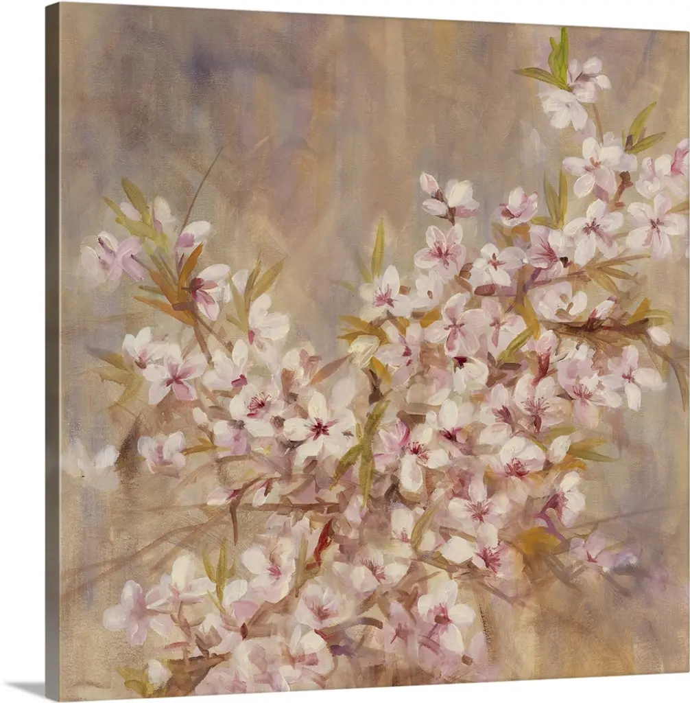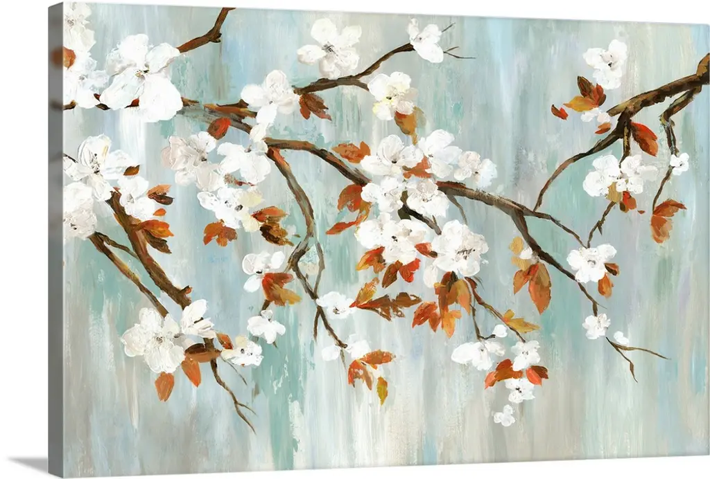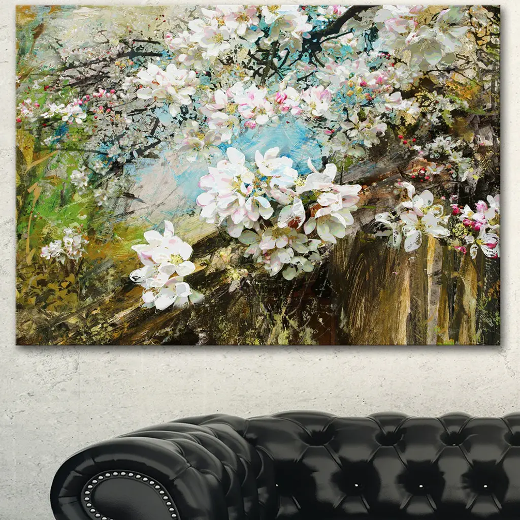 Apple Blossoms With White Flowers, Floral Art Canvas Print, 60"x28"