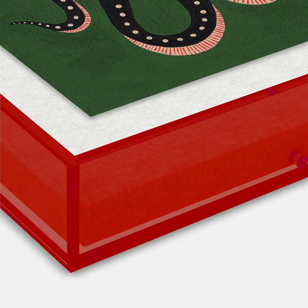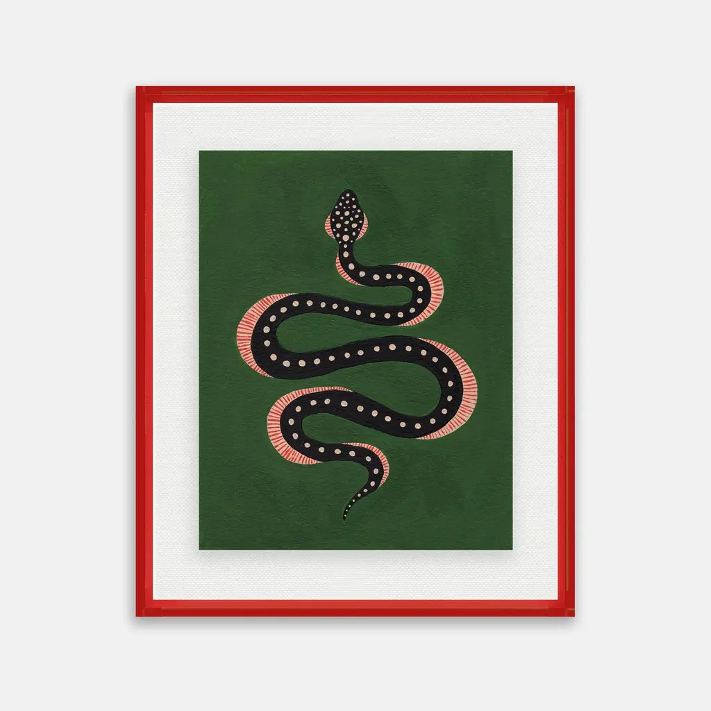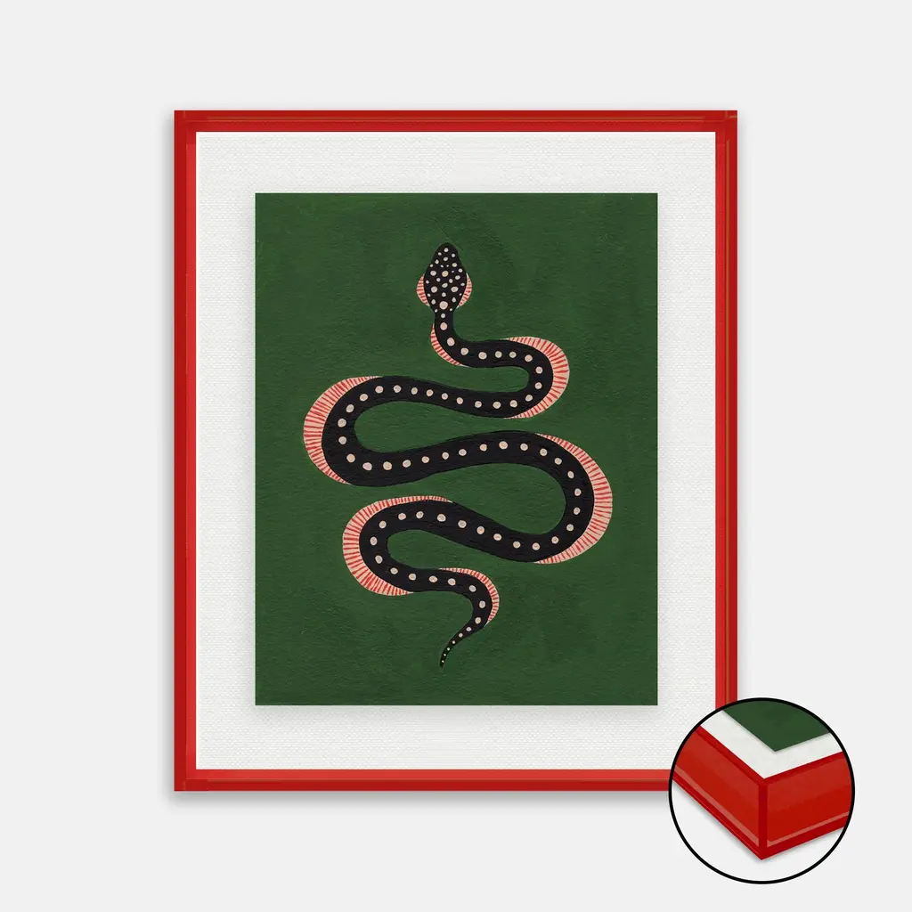 Apple The Snake By Willa Heart In Dark Red Acrylic Shadowbox, Medium Art Print