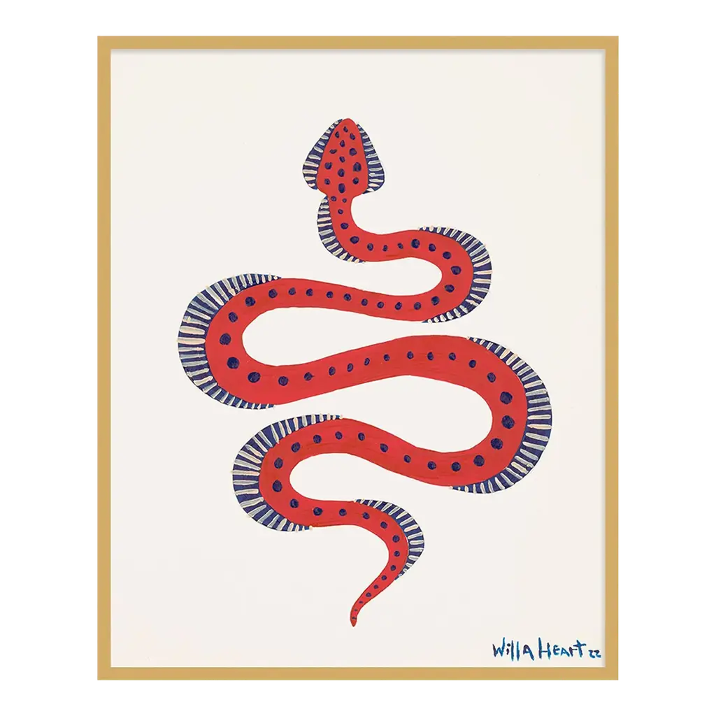 DESCRIPTION: Apple the Snake by Willa Heart in Dark Red Acrylic Shadowbox, Medium Art Print SPECIFICATIONS: Type: Acrylic Shadowbox. Framed Size (in): 40x36. Orientation: Vertical. Flush/Float/Matted: Floated. Frame Color: Dark Red Acrylic Shadowbox. Hanging Hardware: Z Bar. FRAMING: Each art work arrives framed and ready to hang. We use handmade frames with a plexiglass glazing front, because it offers less glare than standard glass. At this time, we only offer framed prints. ARTIST BIO: Willa Heart is the brainchild of artist and designer Alyssa Jill Harris. Alyssa was born and raised in Boston, MA, and currently lives in Camden, SC. After being diagnosed at a young age as dyslexic, Alyssa’s mother (whose middle name is Willa) immersed her in the arts knowing her strengths would lie outside of the classroom. Alyssa credits her dyslexia for allowing her to see the world differently, which has made her extra creative. Alyssa has attended University of Hartford Art School, School of the Museum of Fine Arts Boston, North Bennet Street School, & Boca Raton Museum Art School.