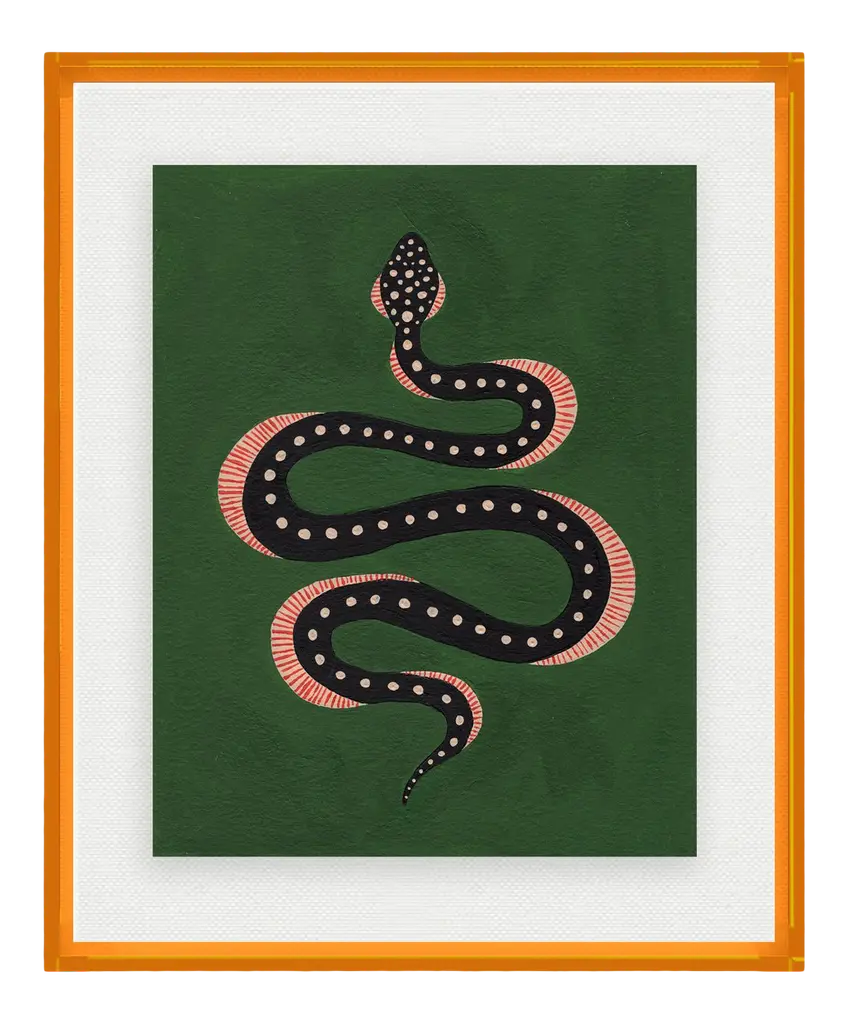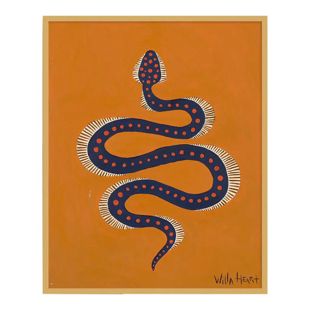 DESCRIPTION: Apple the Snake by Willa Heart in Dark Red Acrylic Shadowbox, Small Art Print SPECIFICATIONS: Type: Acrylic Shadowbox. Framed Size (in): 20x24. Orientation: Vertical. Flush/Float/Matted: Floated. Frame Color: Dark Red Acrylic Shadowbox. Hanging Hardware: Z Bar. FRAMING: Each art work arrives framed and ready to hang. We use handmade frames with a plexiglass glazing front, because it offers less glare than standard glass. At this time, we only offer framed prints. ARTIST BIO: Willa Heart is the brainchild of artist and designer Alyssa Jill Harris. Alyssa was born and raised in Boston, MA, and currently lives in Camden, SC. After being diagnosed at a young age as dyslexic, Alyssa’s mother (whose middle name is Willa) immersed her in the arts knowing her strengths would lie outside of the classroom. Alyssa credits her dyslexia for allowing her to see the world differently, which has made her extra creative. Alyssa has attended University of Hartford Art School, School of the Museum of Fine Arts Boston, North Bennet Street School, & Boca Raton Museum Art School.