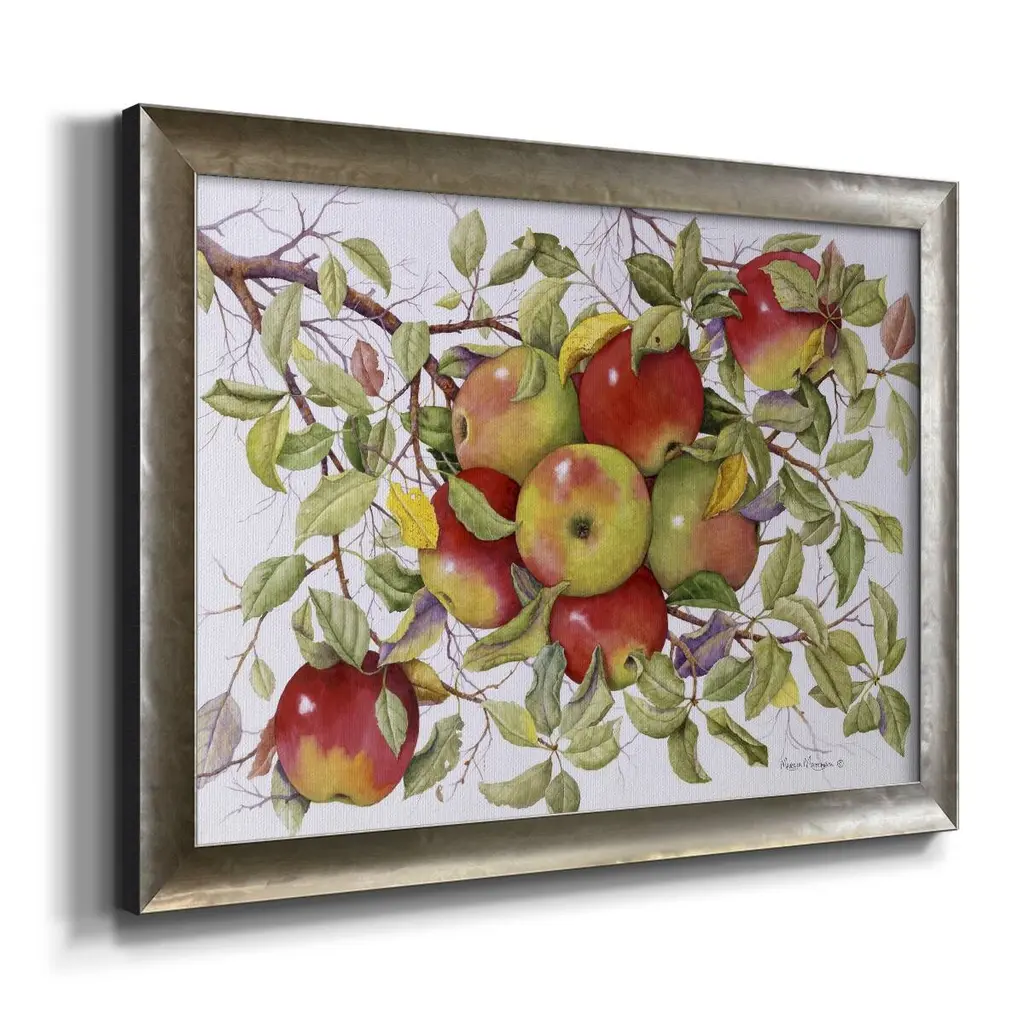 Apples Premium Framed Canvas- Ready to Hang A Premium Framed Canvas created to last. Framed in distressed wood and available in an array of sizes and colors Featuring a beveled a solid wood stretcher bar, each piece comes ready to hand 3 SIZES AVAILABLE 16''X20'' - Overall Size 18'X27'' - Overall Size 24''x36'' - Overall Size Each piece is made to order. Each piece comes with hanging hardware. Made in the USA Ready to Hang Giclee Paper Print Acrylic Glass Beveled Matt Board