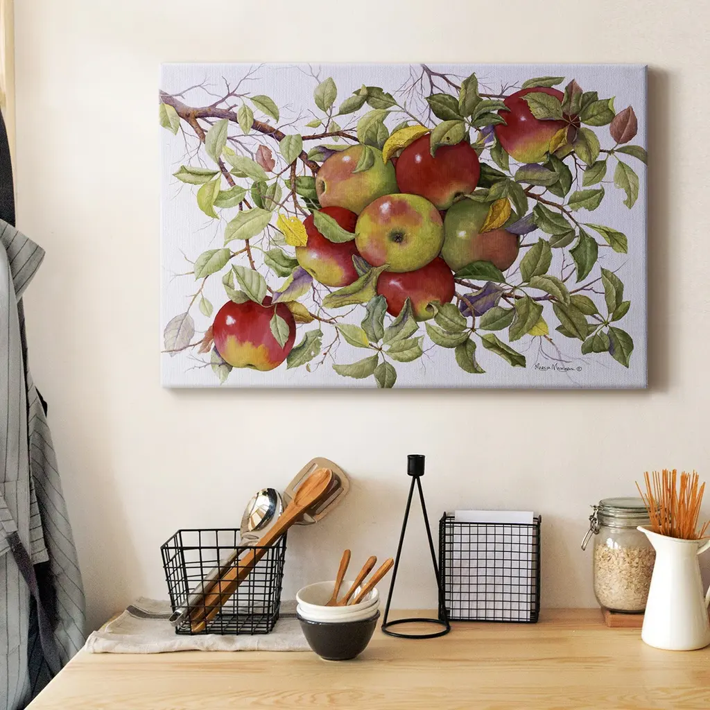 Apples Premium Gallery Wrapped Canvas - Ready to Hang A premium hand stretched gallery wrapped canvas print created to last. Featuring a beveled a solid wood stretcher bar, each piece comes ready to hand 6 SIZES AVAILABLE 8''X12'' - Overall Size 12''X18'' - Overall Size 18''X27'' - Overall Size 24''x36'' - Overall Size 32''x48'' - Overall Size 40''x60'' - Overall Size Each piece is made to order. Built to Last Each piece comes ready to hang Solid wood stretcher Fade and Water resistant Made domestically