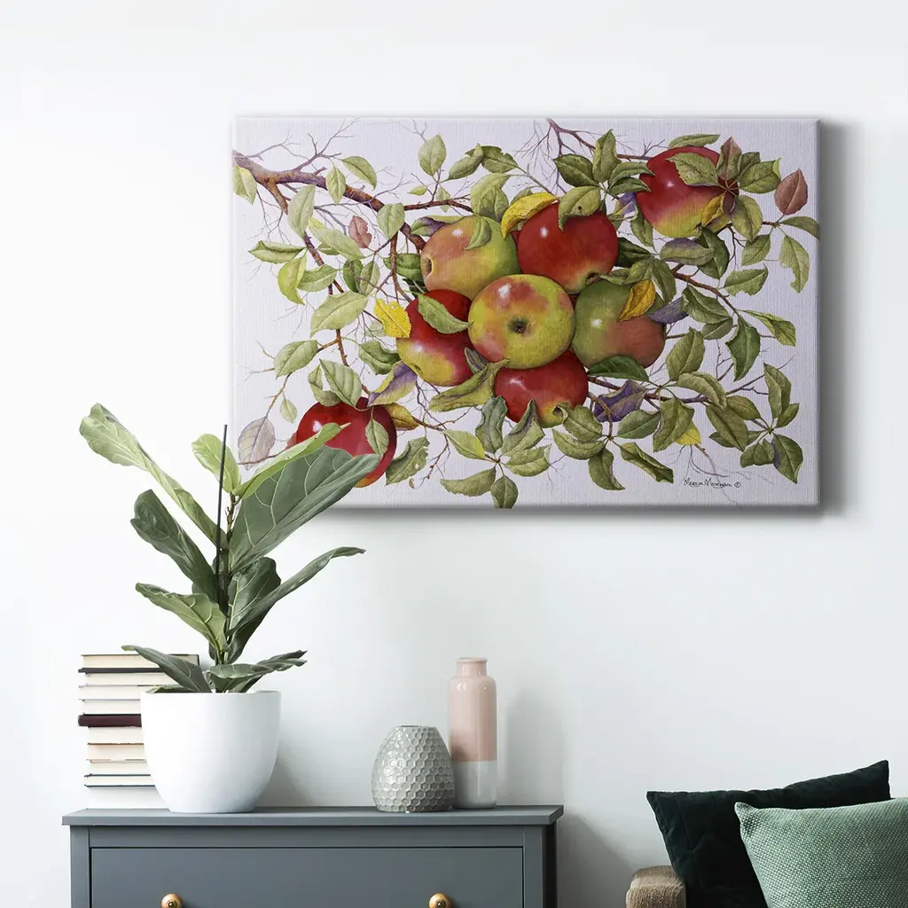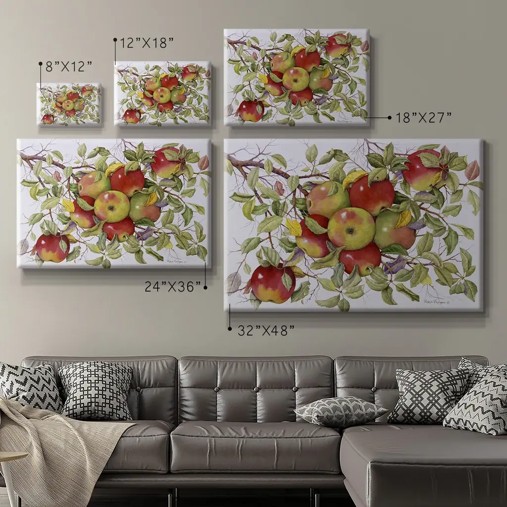 Apples Premium Gallery Wrapped Canvas - Ready to Hang A premium hand stretched gallery wrapped canvas print created to last. Featuring a beveled a solid wood stretcher bar, each piece comes ready to hand 6 SIZES AVAILABLE 8''X12'' - Overall Size 12''X18'' - Overall Size 18''X27'' - Overall Size 24''x36'' - Overall Size 32''x48'' - Overall Size 40''x60'' - Overall Size Each piece is made to order. Built to Last Each piece comes ready to hang Solid wood stretcher Fade and Water resistant Made domestically
