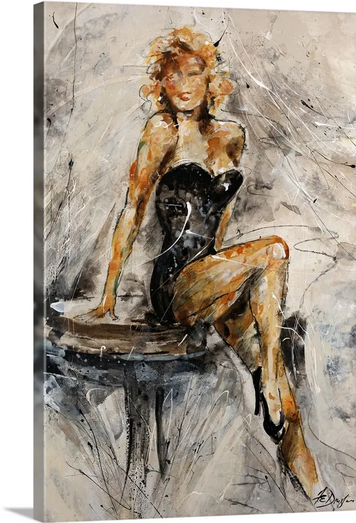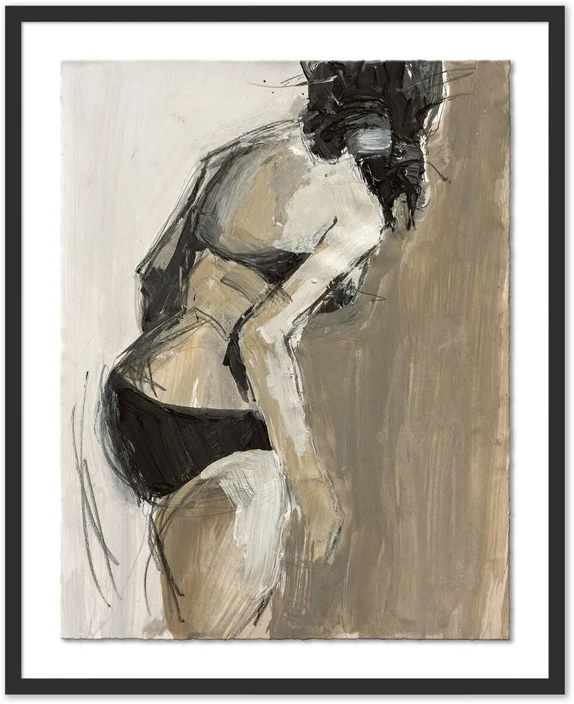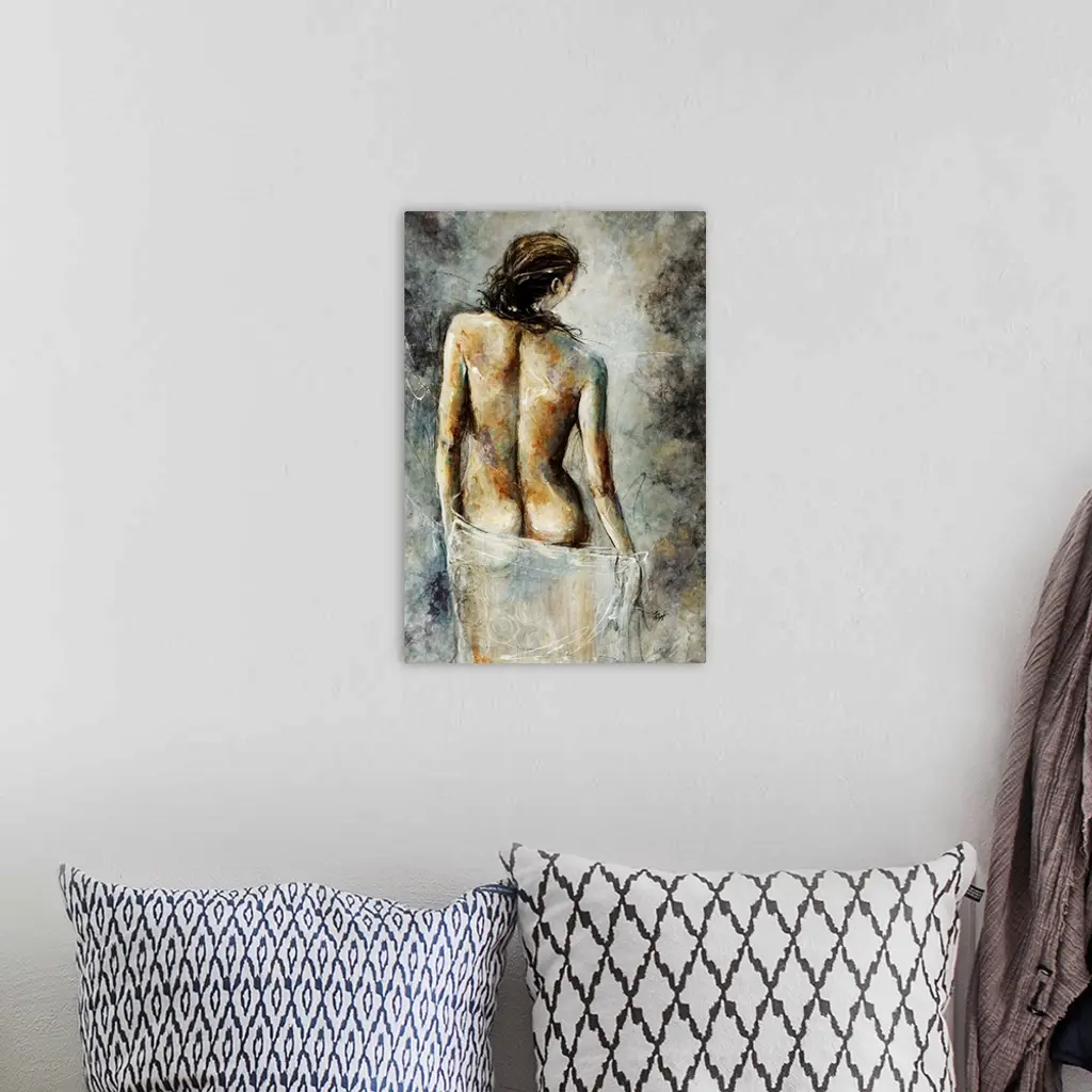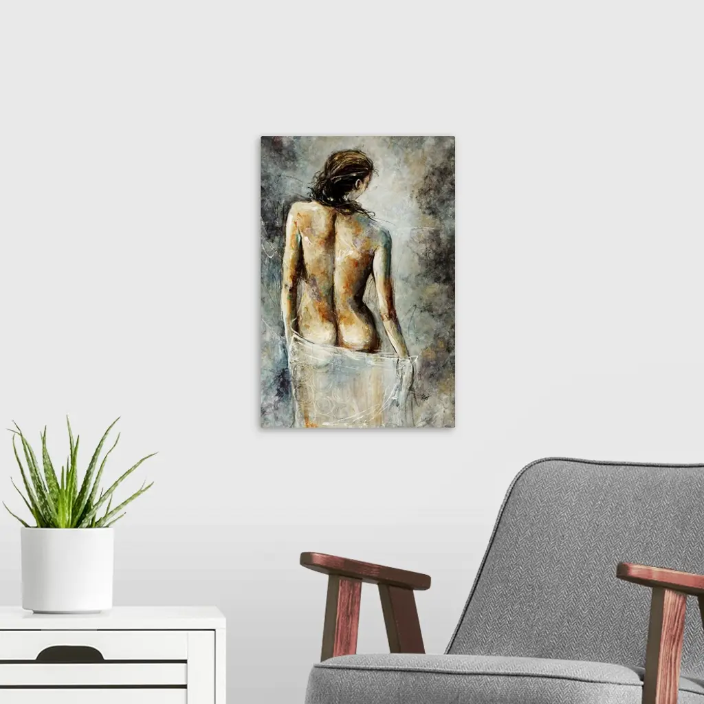 Contemporary artwork drawn of a woman's backside as she drapes a white cloth just below her buttocks.