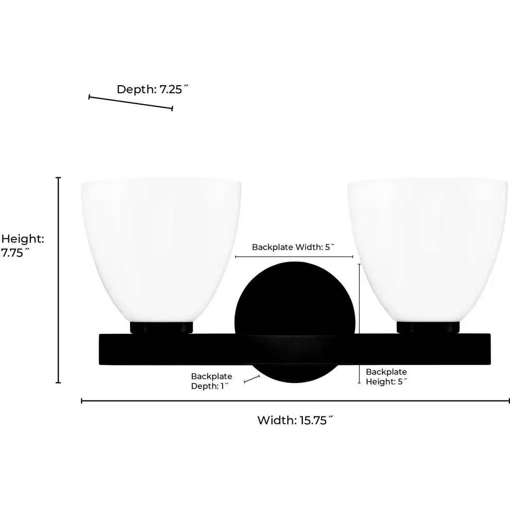 Apria 2 Light 15.75 Inch Matte Black Bathroom Vanity Light Wall Light