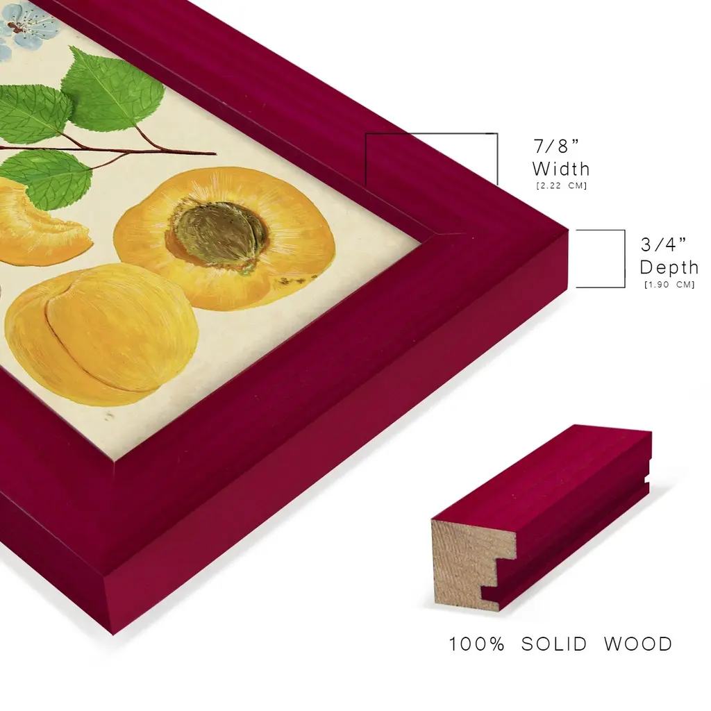 Apricot Study II -EZ SWITCH Framed Print w/glass-Cherry Red A delightful, framed print. Featuring a solid wood frame with real wood glass. This premium print is giclee quality. In addition, every frame features a removable back and table top stand. This allows you to change your art in the future or to just stand the art on a table for a new look. We are sure you'll enjoy our new series of EZ SWITCH Framed Art. Solid Wood Frame Real Glass Removable / Replaceable Art Built in Tabletop Stand Sizes range from 4x6 up to 12x15 - buy just one or pair them up as sets as you see fit.