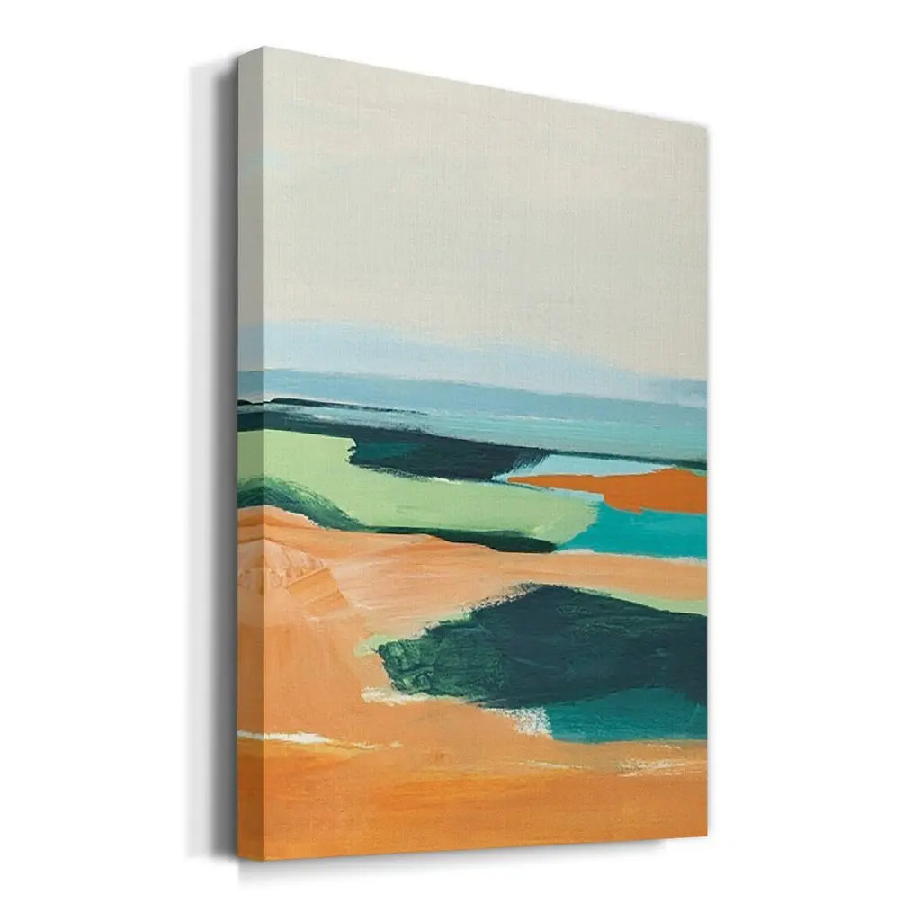 Aqua and Orange II Premium Gallery Wrapped Canvas - Ready to Hang A premium hand stretched gallery wrapped canvas print created to last. Featuring a beveled a solid wood stretcher bar, each piece comes ready to hand 6 SIZES AVAILABLE 8''X12'' - Overall Size 12''X18'' - Overall Size 18''X27'' - Overall Size 24''x36'' - Overall Size 32''x48'' - Overall Size 40''x60'' - Overall Size Each piece is made to order. Built to Last Each piece comes ready to hang Solid wood stretcher Fade and Water resistant Made domestically