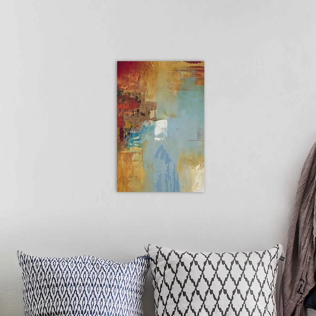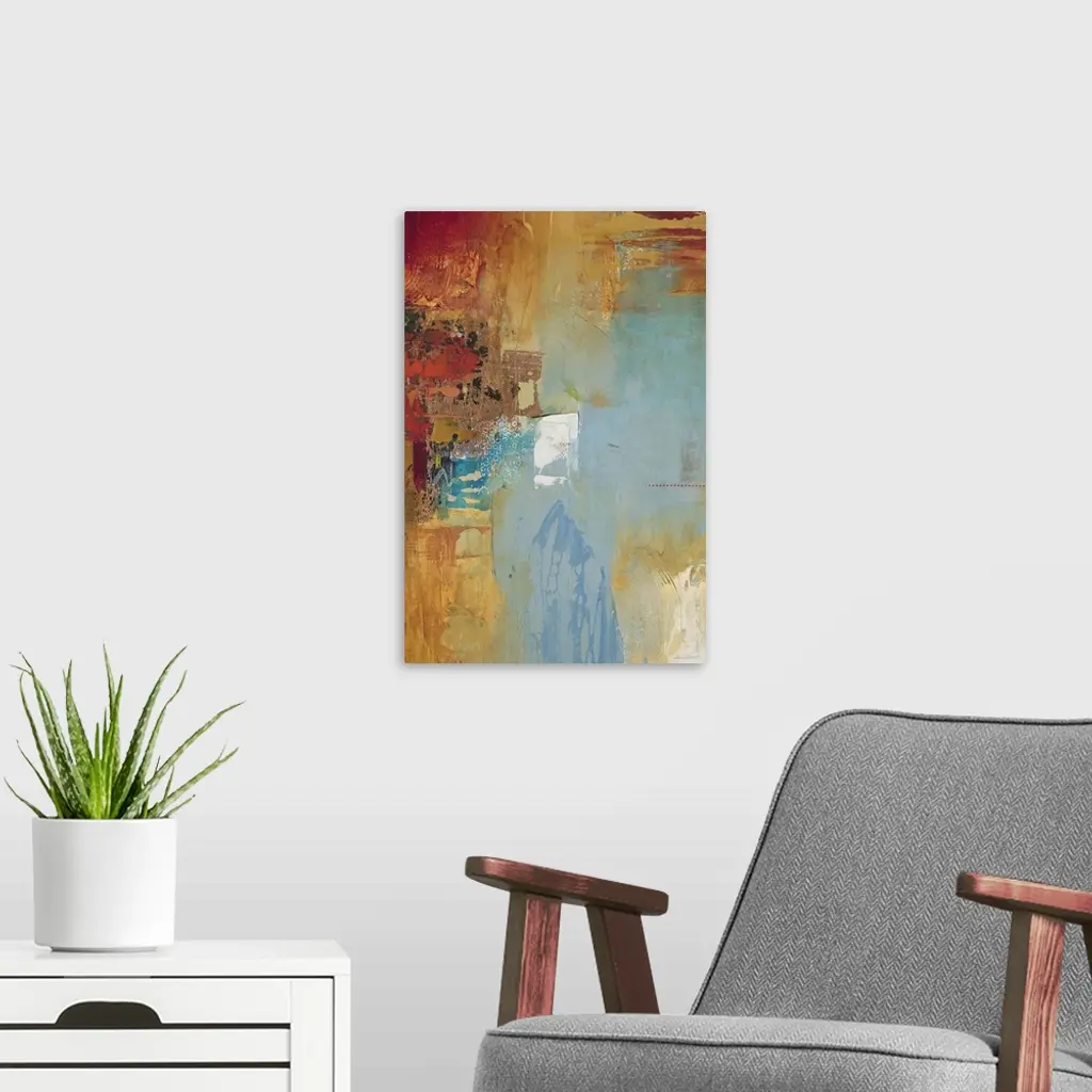 Contemporary abstract artwork using rich earthy tones and textures, mixed with aqua blue tones.
