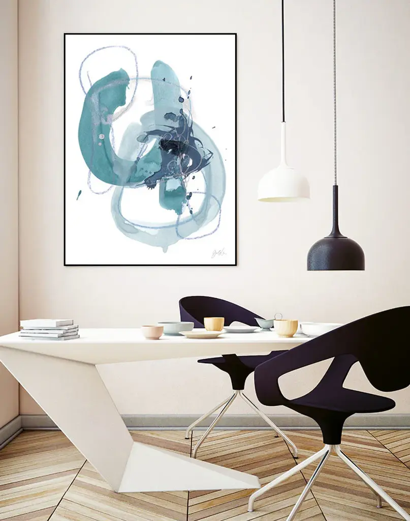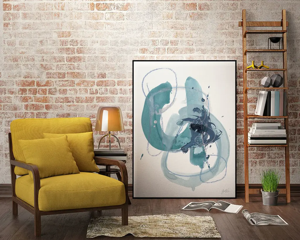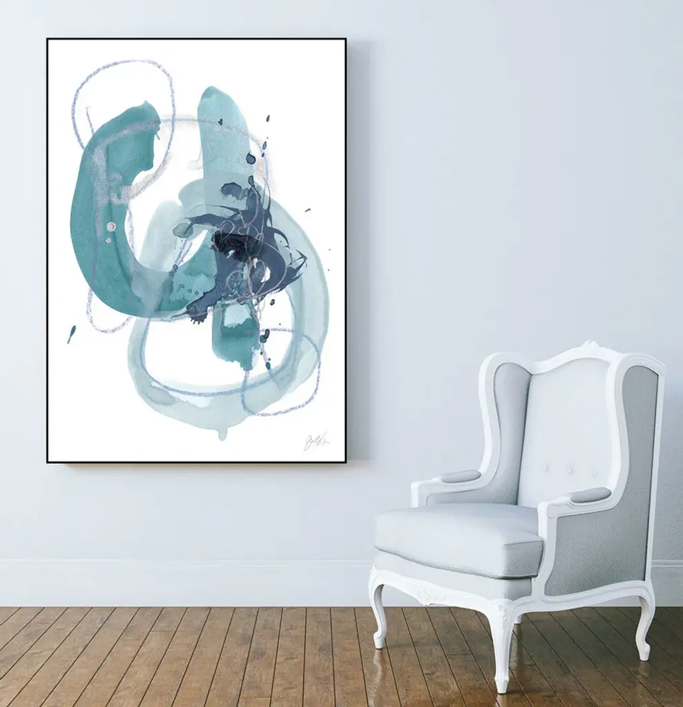 Your ready-to-hang artwork is printed on canvas then stretched and mounted to a 2 inch-thick, hand-stained black wood frame. Arrives at your door complete with an easy-to-use self-leveling hanging kit.