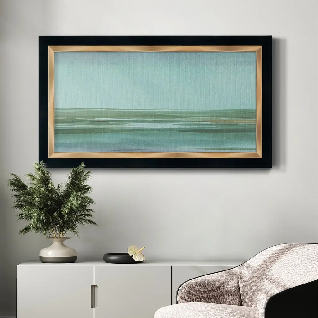 Aqua Reflections Ii Premium Framed Canvas- Ready To Hang - 18x34 - Black