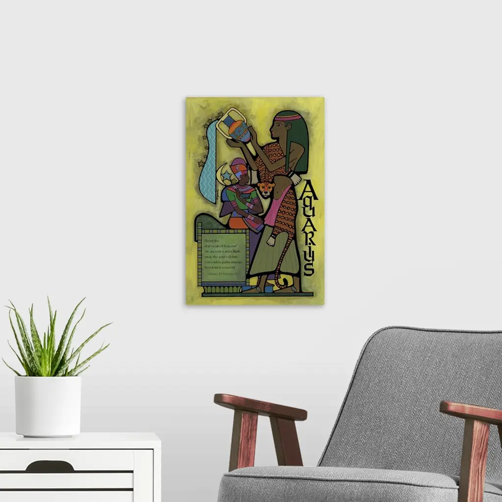 Artwork and Poetry Focusing on the mythology of each sign, alluding to the astrological traits, with references to the genesis of the individual constellations and the machinations of the ancient gods. "Flood the star-soaked heavens! His ancient waters flush away the past's debris. Untrodden paths emerge. Freedom is restored." Aquarius, January 20 - February 18.