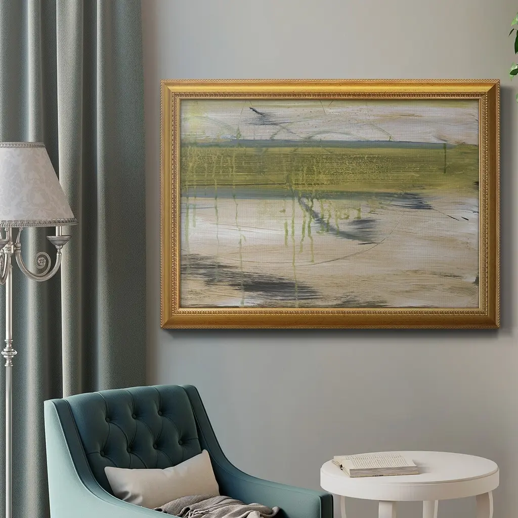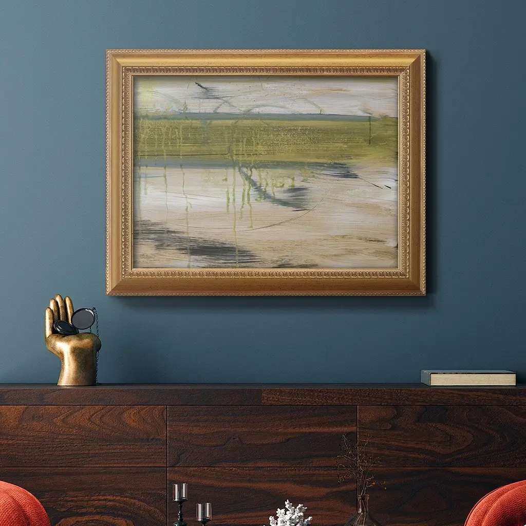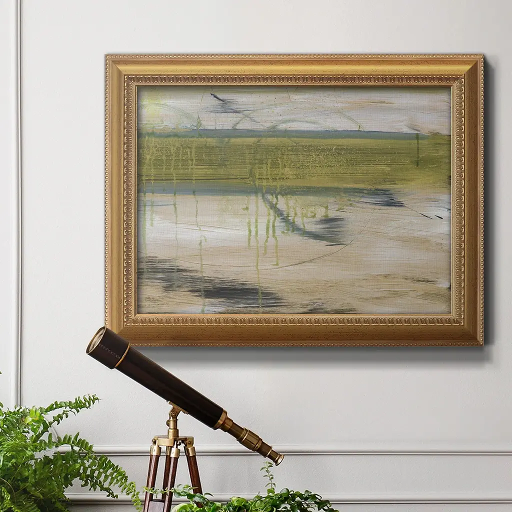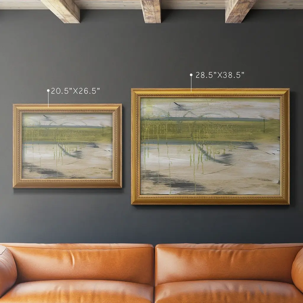 Aquatic Reflections I Premium Framed Canvas- Ready to Hang A Premium Framed Canvas created to last. Framed in distressed wood and available in an array of sizes and colors Featuring a beveled a solid wood stretcher bar, each piece comes ready to hand 3 SIZES AVAILABLE 16''X20'' - Overall Size 18'X27'' - Overall Size 24''x36'' - Overall Size Each piece is made to order. Each piece comes with hanging hardware. Made in the USA Ready to Hang Giclee Paper Print Acrylic Glass Beveled Matt Board