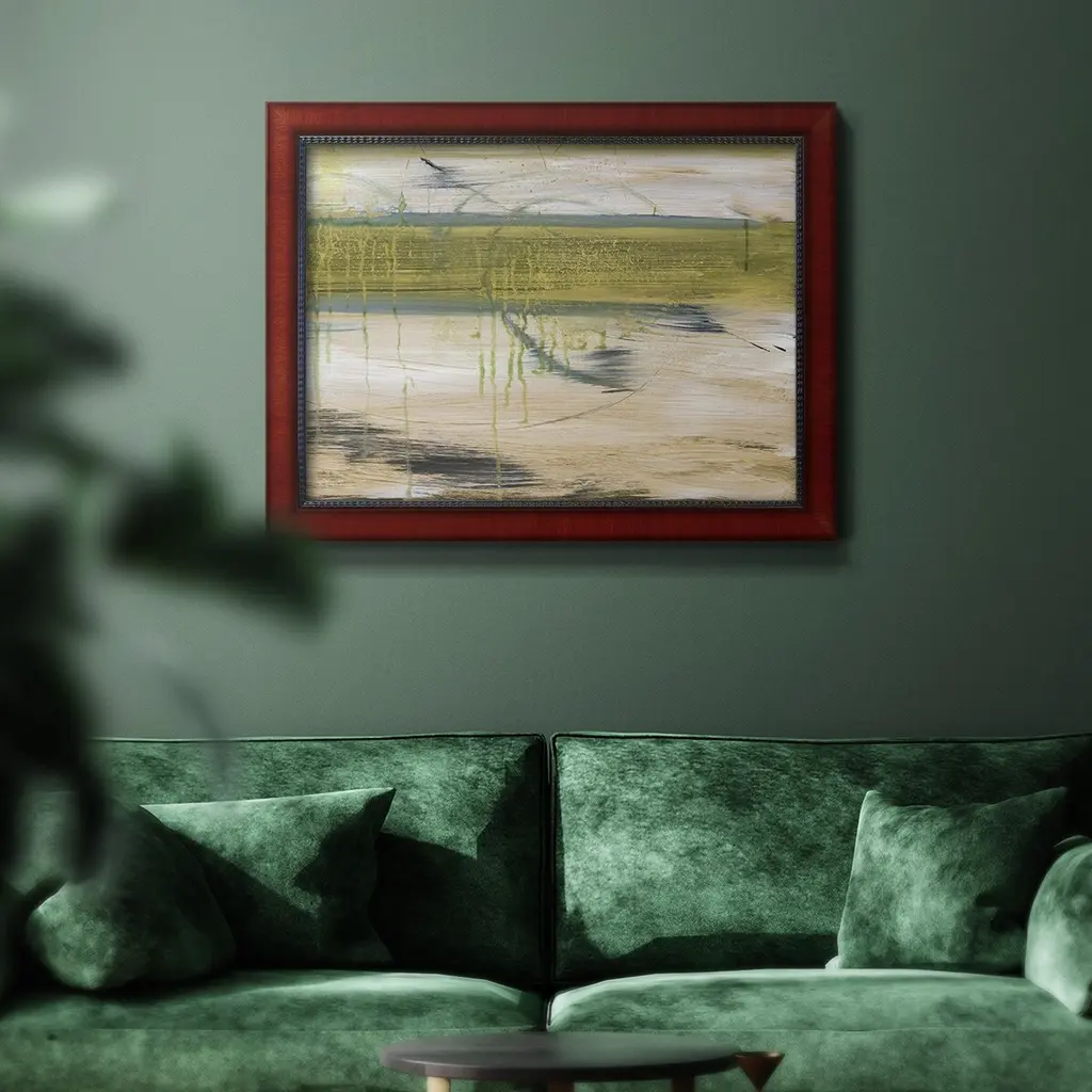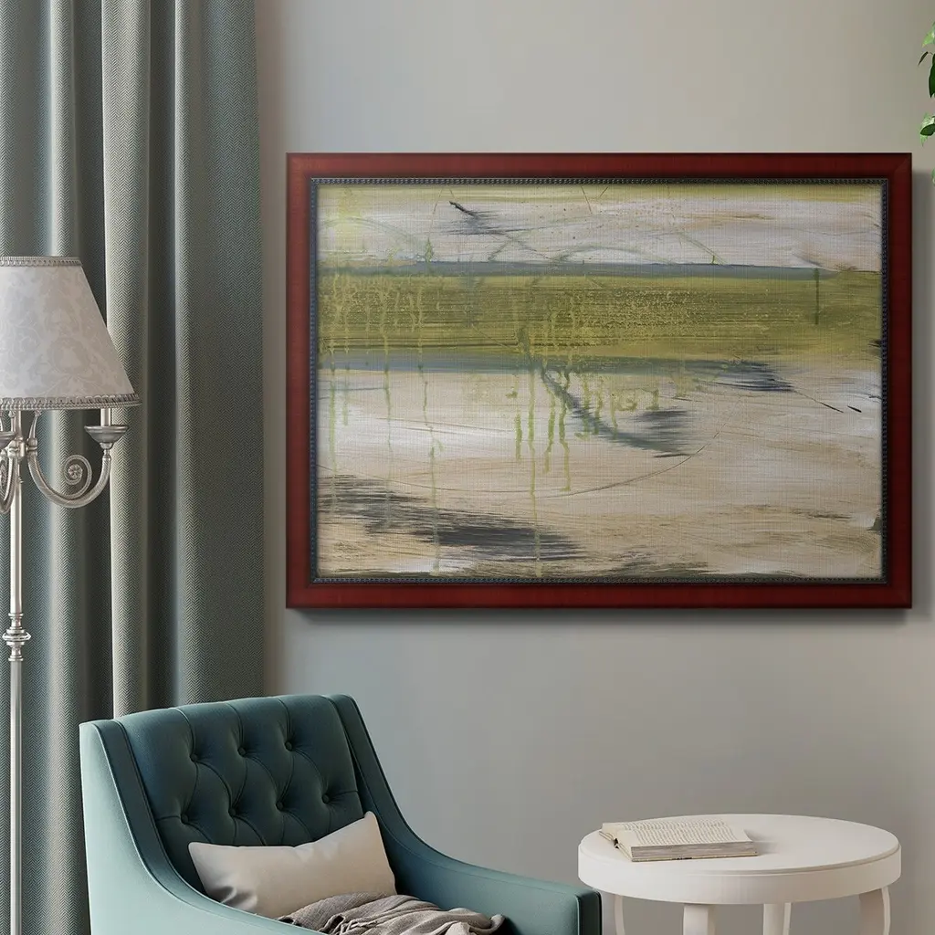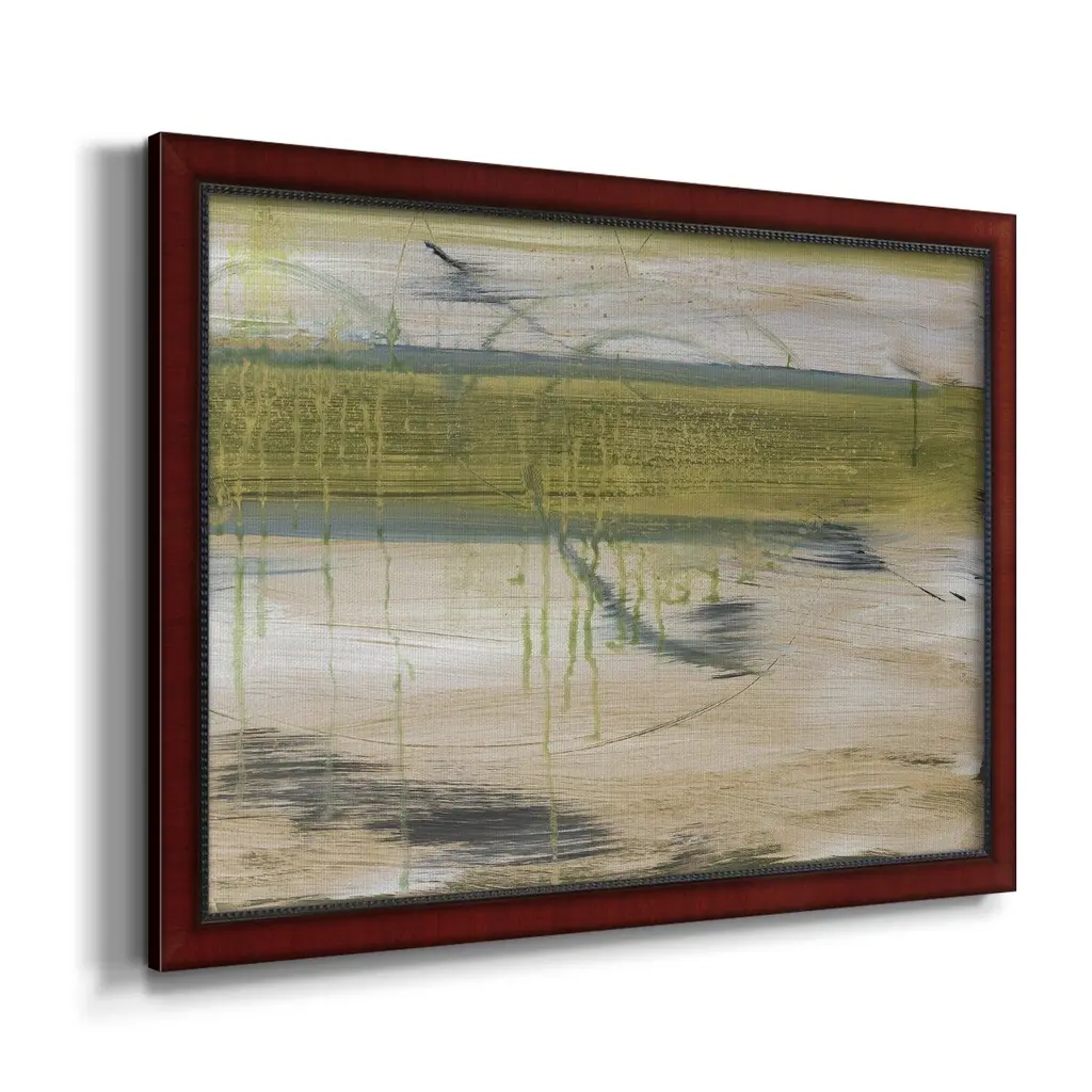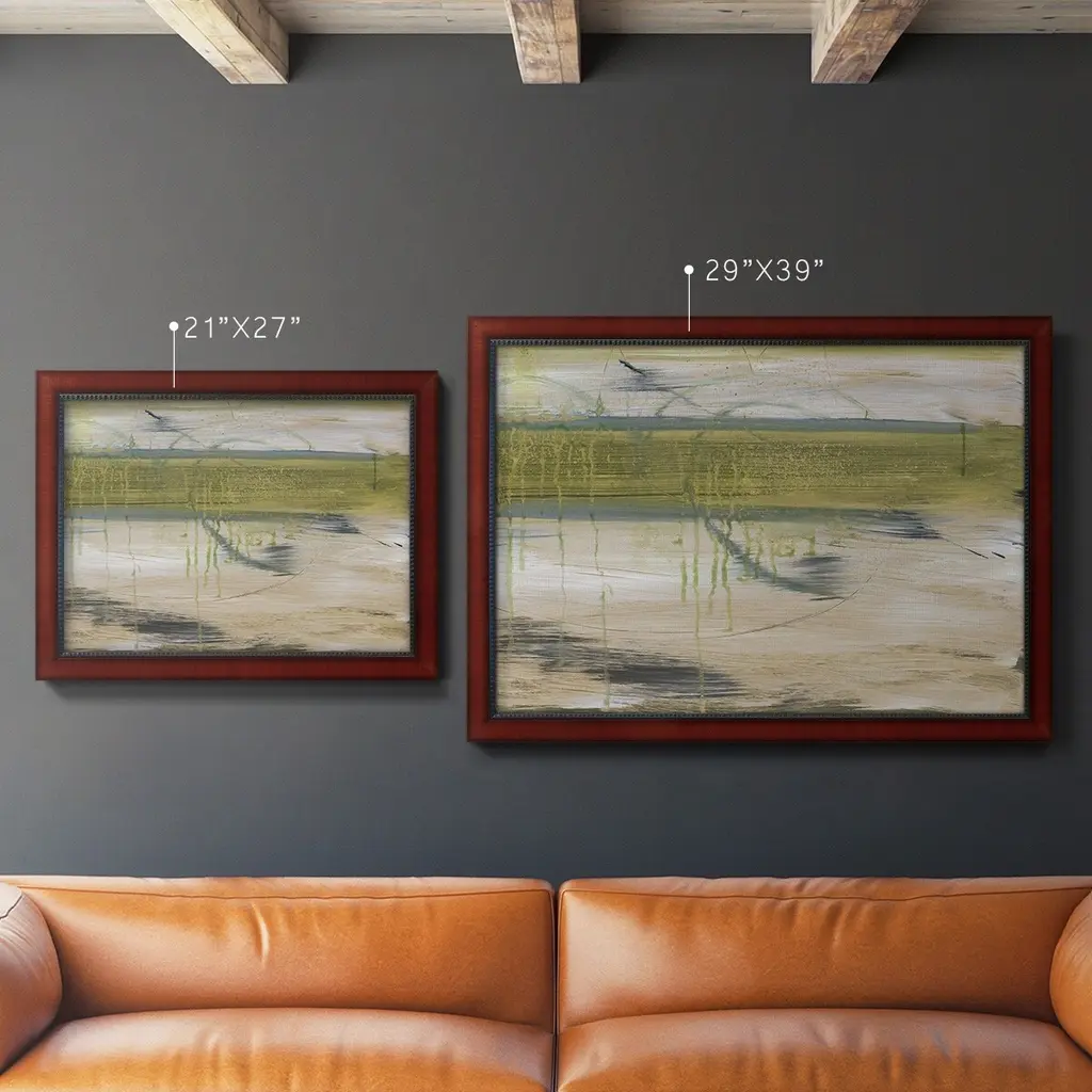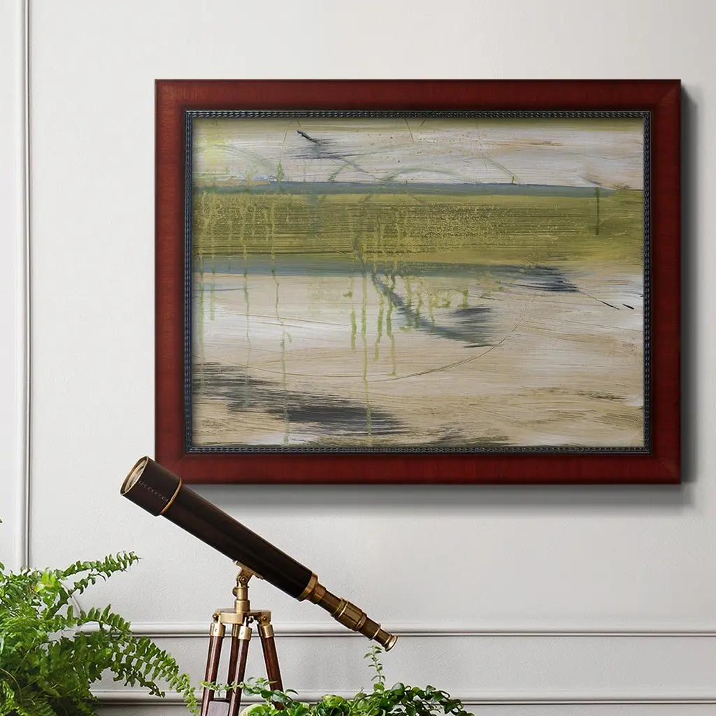 Aquatic Reflections I Premium Framed Canvas- Ready to Hang A Premium Framed Canvas created to last. Framed in distressed wood and available in an array of sizes and colors Featuring a beveled a solid wood stretcher bar, each piece comes ready to hand 3 SIZES AVAILABLE 16''X20'' - Overall Size 18'X27'' - Overall Size 24''x36'' - Overall Size Each piece is made to order. Each piece comes with hanging hardware. Made in the USA Ready to Hang Giclee Paper Print Acrylic Glass Beveled Matt Board