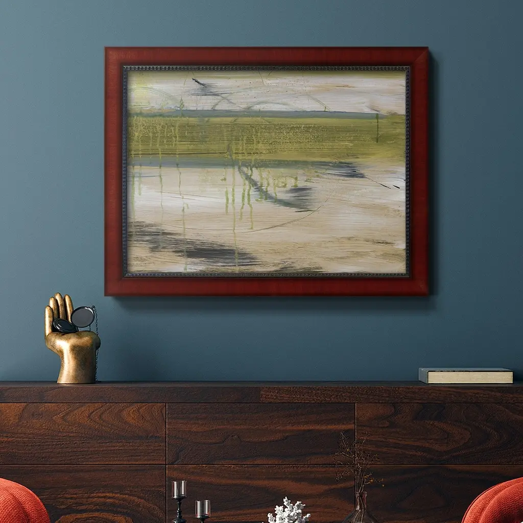 Aquatic Reflections I Premium Framed Canvas- Ready to Hang A Premium Framed Canvas created to last. Framed in distressed wood and available in an array of sizes and colors Featuring a beveled a solid wood stretcher bar, each piece comes ready to hand 3 SIZES AVAILABLE 16''X20'' - Overall Size 18'X27'' - Overall Size 24''x36'' - Overall Size Each piece is made to order. Each piece comes with hanging hardware. Made in the USA Ready to Hang Giclee Paper Print Acrylic Glass Beveled Matt Board