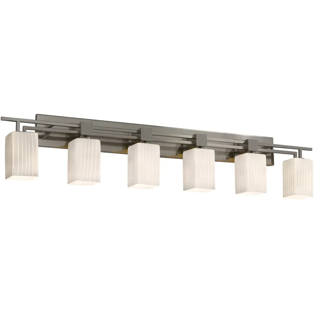 Part industrial, part modern. The Arc Ellipse Vanity Light by Hubbardton Forge brings a fresh, bold look to bathrooms, vanity counters, or spas. It features a series of cylindrical shades hand blown from opaque glasses. The shades are neatly arranged within the hand-forged wrought iron plate and supported with a matching bar. This damp-rated fixture is mounted to the wall with a rectangular backplate. When illuminated, the light is diffused through the shade to cast a warm, ambient glow.