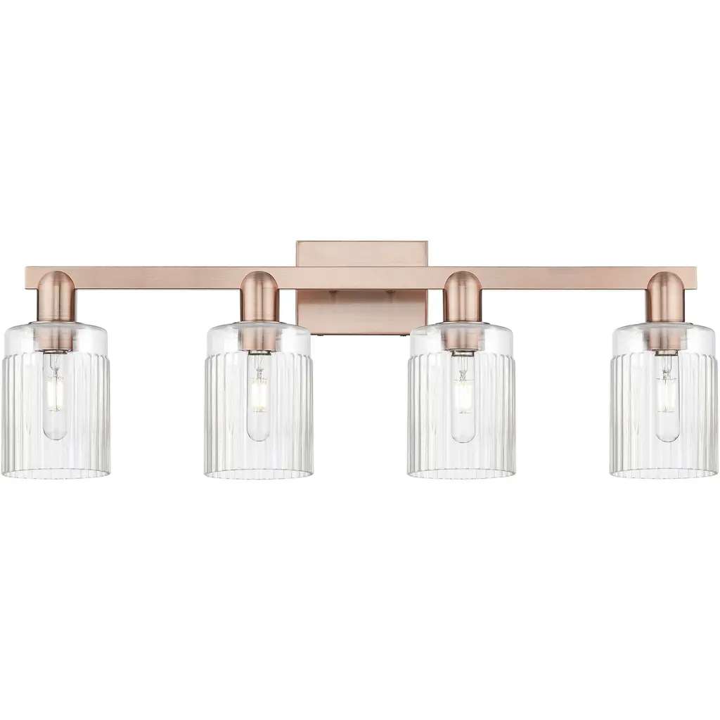 Arcadia Hadley 4 Light 31.5 Inch Antique Copper Bath Vanity Light Wall Light In Clear