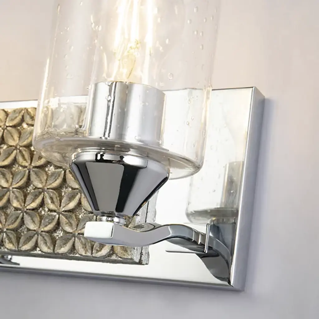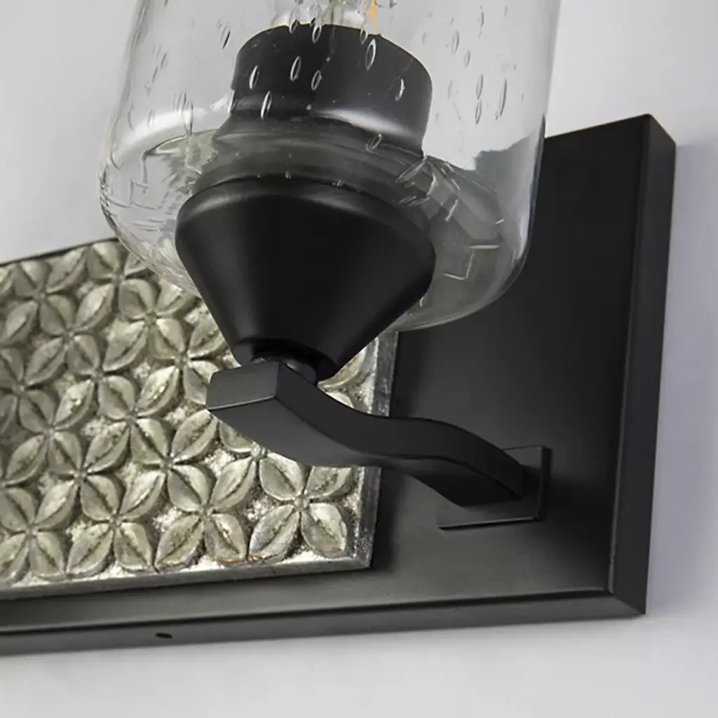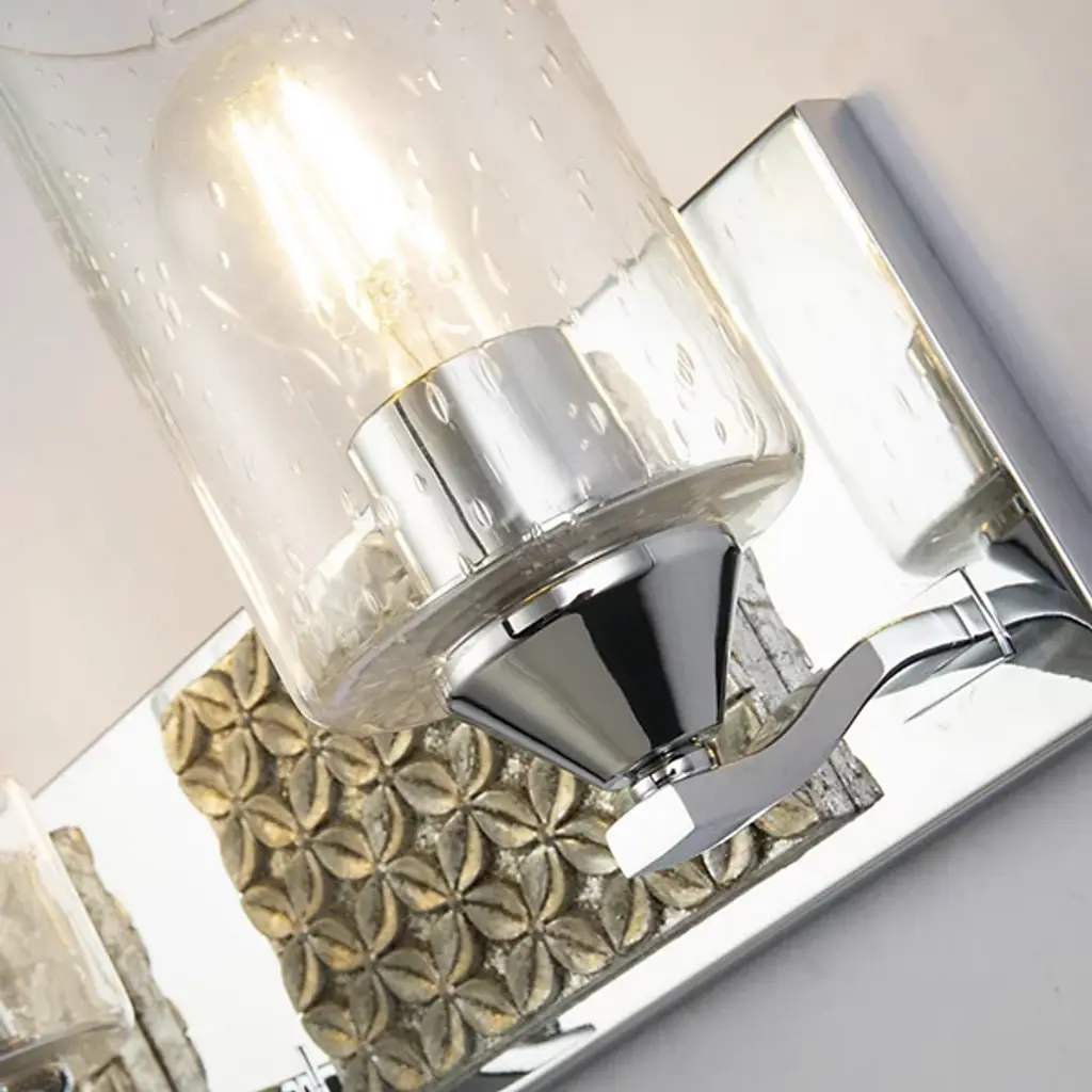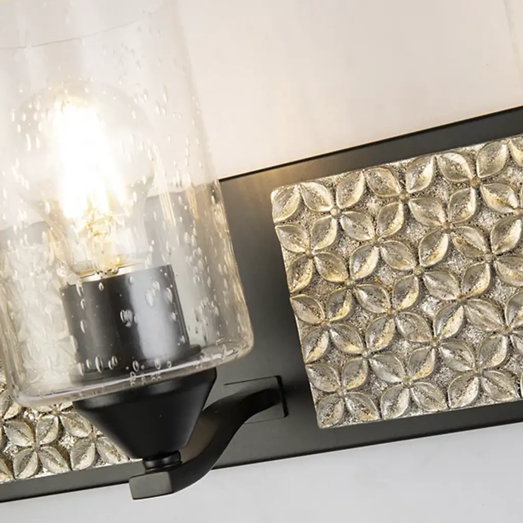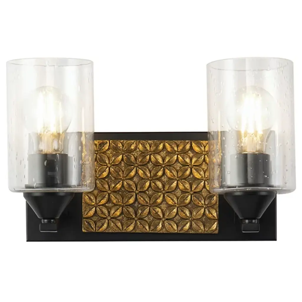 Made for brightening your hallway, bathroom, or living space, the Arcadia Vanity Light by Lucas McKearn features a clean-cut rectangle backplate with textured shapes and a simple curved arm. Showing off its contemporary side, this wall sconce uses a cylinder-shaped clear seeded glass to bring attention to the mix of texture and detail that come together seamlessly.