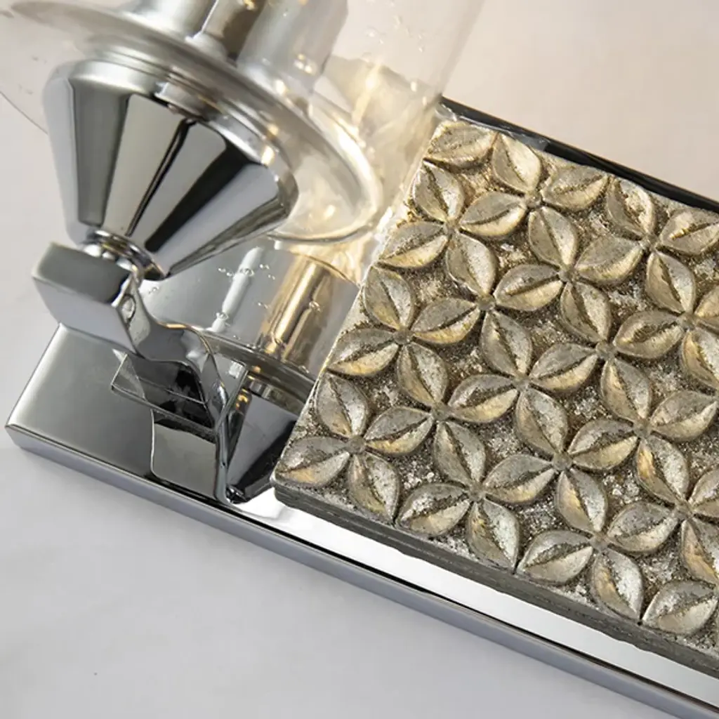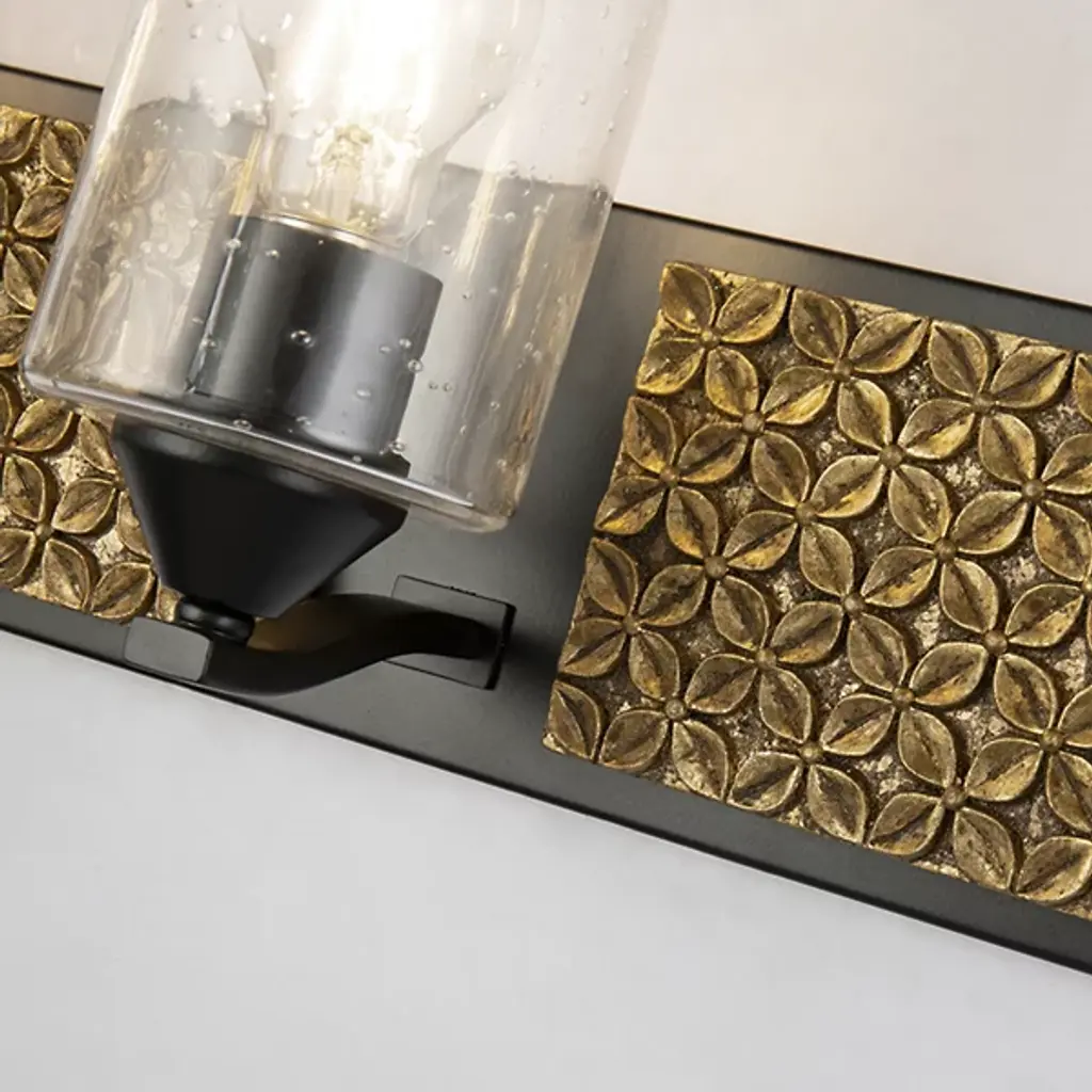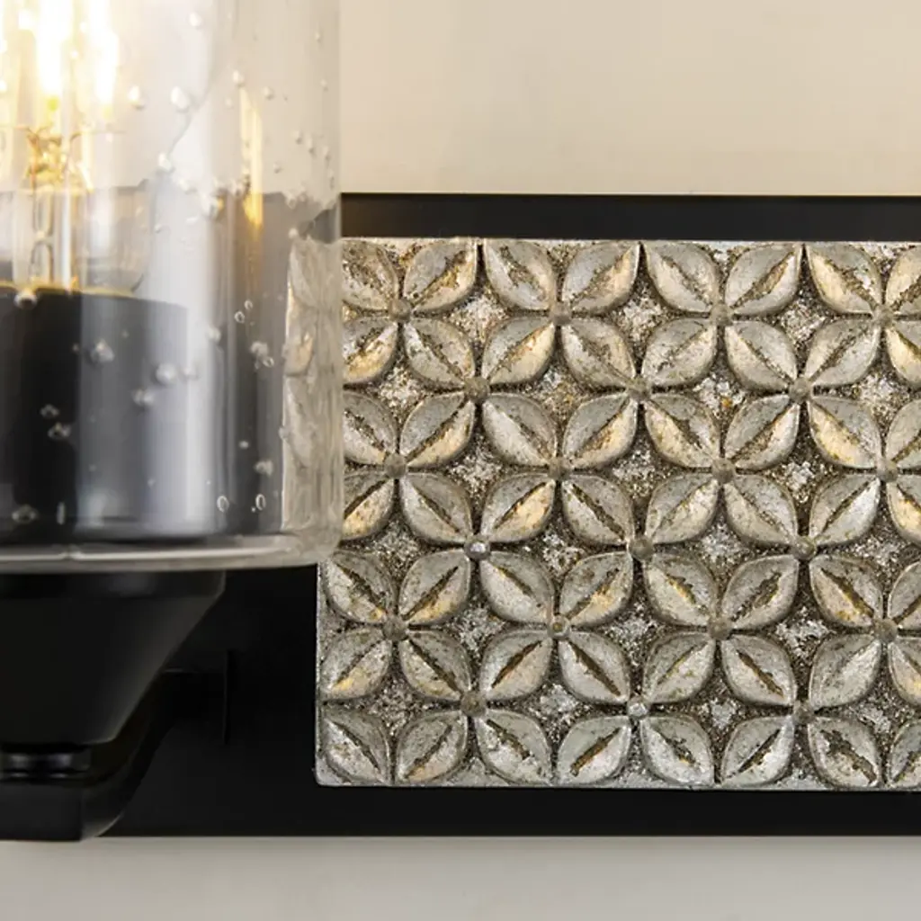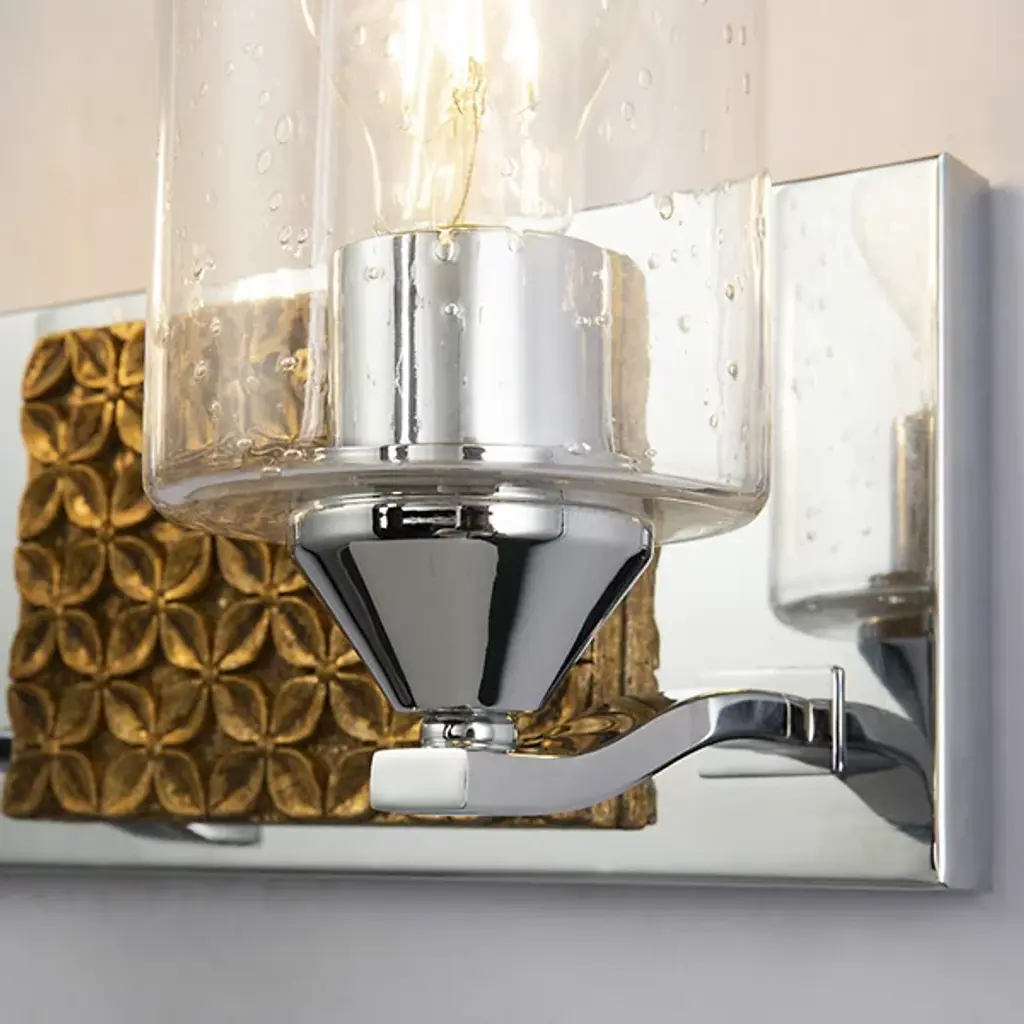 Made for brightening your hallway, bathroom, or living space, the Arcadia Vanity Light by Lucas McKearn features a clean-cut rectangle backplate with textured shapes and a simple curved arm. Showing off its contemporary side, this wall sconce uses a cylinder-shaped clear seeded glass to bring attention to the mix of texture and detail that come together seamlessly.
