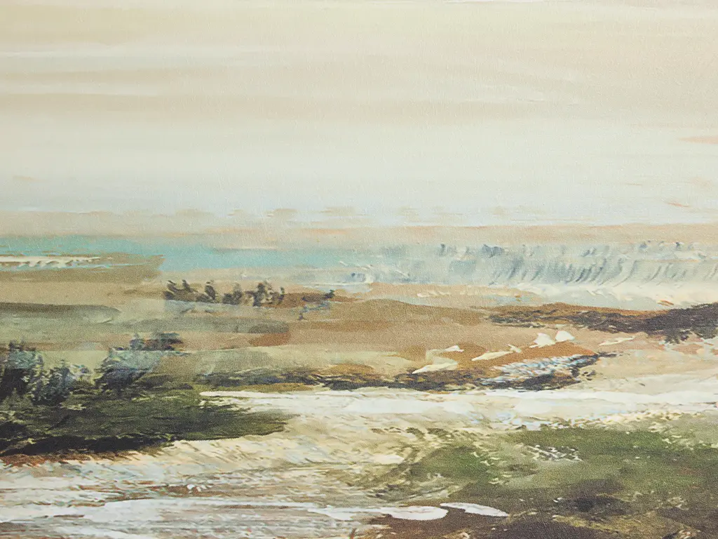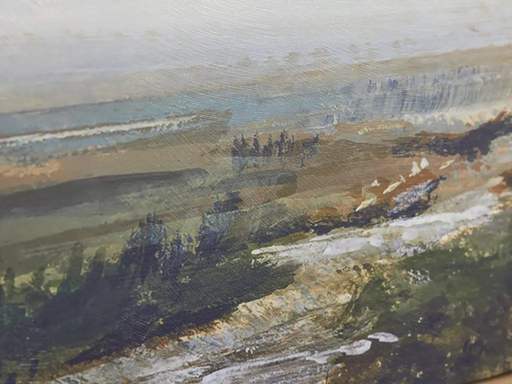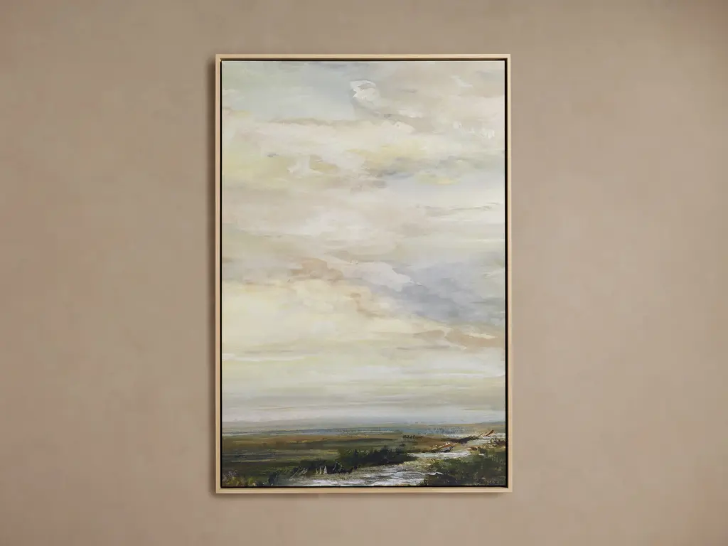 Depicting a peaceful rolling sky with sunlight peeking through the clouds above a lush landscape, Arcadian Sky features a harmonious moment with nature. Artist Jacob Lincoln draws inspiration from diverse cultural perspectives and the shared experiences of people around the world to create his portfolio of relatable pieces that leave lasting impressions. Giclee print on gallery-wrapped canvas with hand-painted detail strokes. Polystyrene frame features a beige finish. Hangs vertically from back-mounted wire. Artist: Jacob Lincoln
