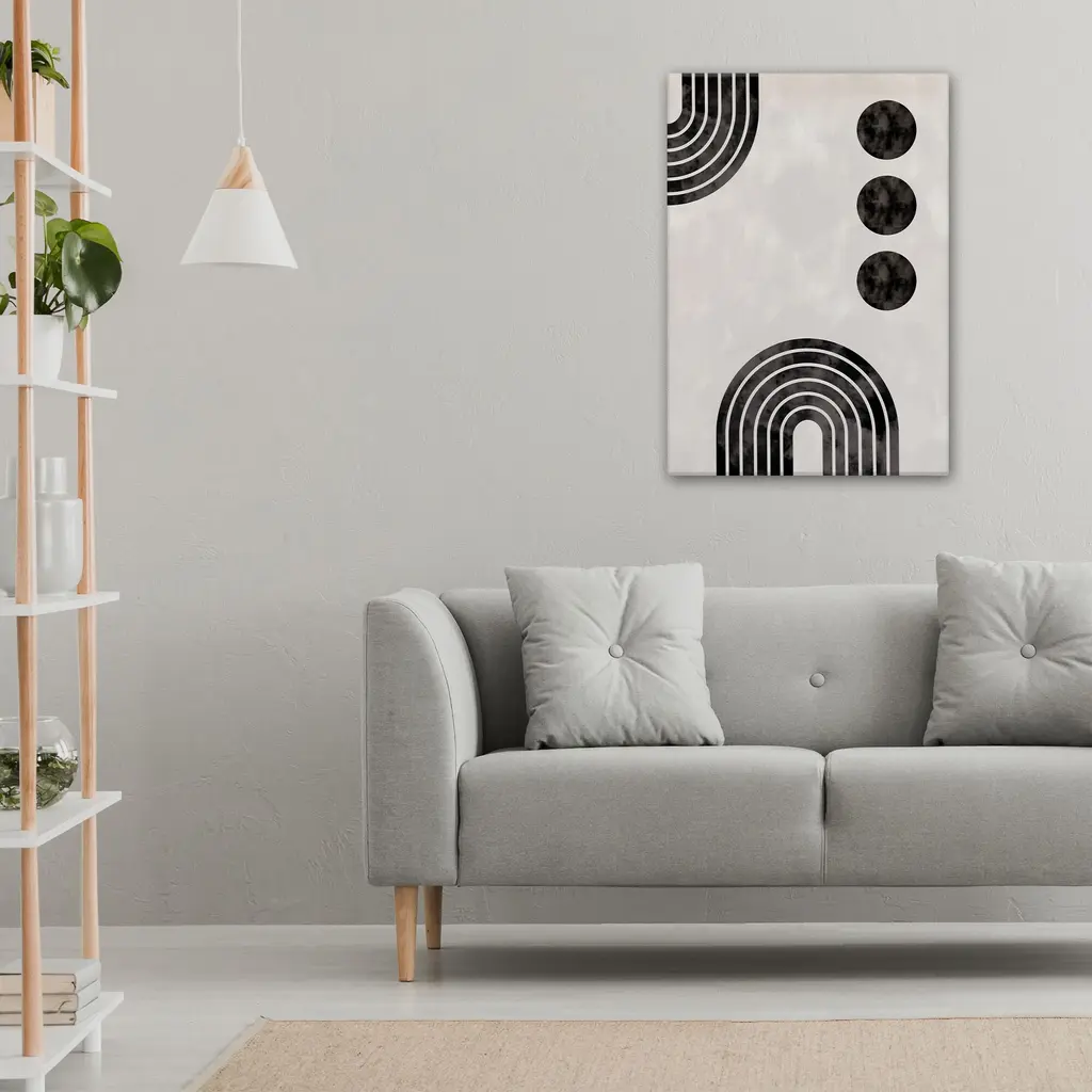 Infuse your space with the essence of this trendy wall art titled "Arch Drops" by 1X. With archs and circles in rich colors of black, gray, and white will complement any modern space. Designed and handcrafted in Chattanooga, Tennessee by Ready2HangArt, using eco-friendly practices. This piece arrives with hardware included and ready-to-hang on your wall for simple installation.