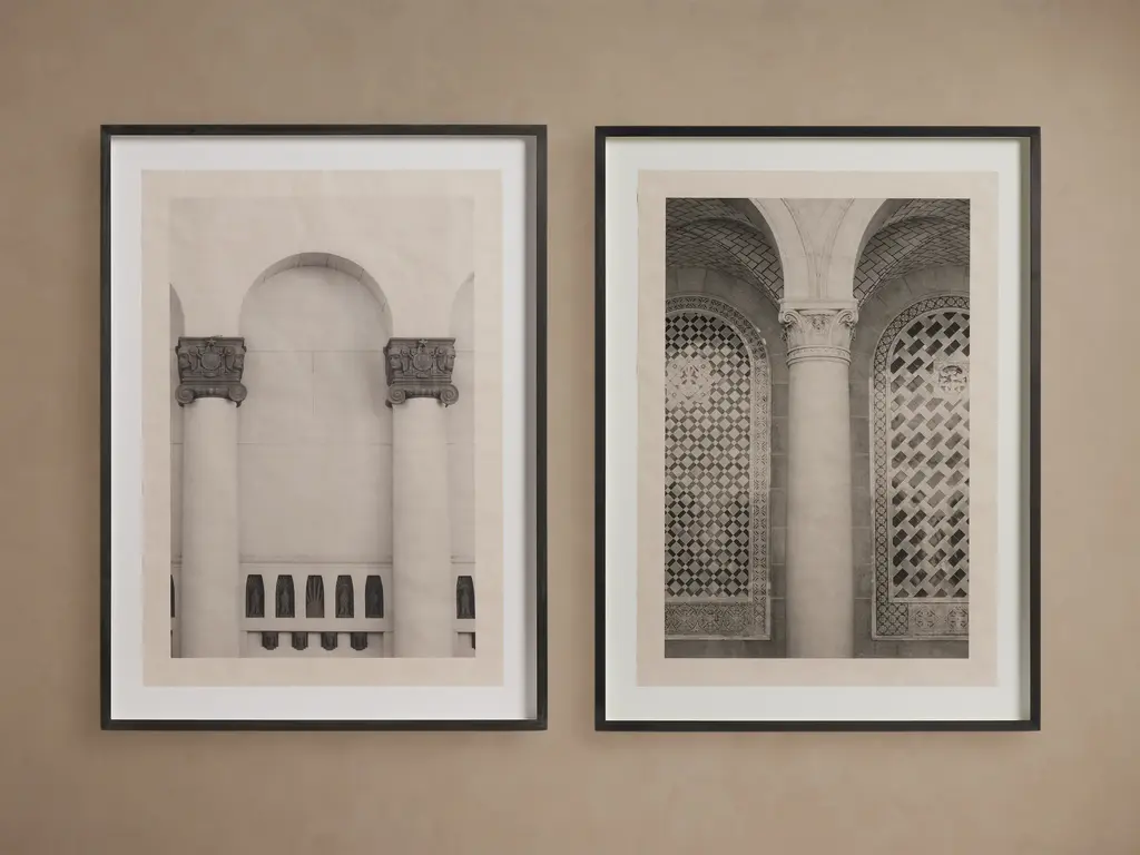 Celebrate the beauty and wonder of architecture with our extra-large Arch Kozo framed print, with a compelling cropped composition that transports viewers around the world yet leaves the actual location up to the imagination. Extraordinary alone or together, each dimensional photograph print has a homespun feel with handmade Japanese washi paper floating on an off-white mat. Framed in a hand-finished charcoal shadowbox frame, this photograph is classic yet contemporary and will add a beautiful touch to any space. Photo taken at The McArthur, a historical building in Los Angeles near McArthur Park. Giclée photograph print on handmade Japanese washi paper floating on an off-white matboard under plexiglass. Features a charcoal-colored hand-finished poplar wood frame. Arch Kozo prints have a gorgeous collected, antique appeal when paired as a set. Hangs vertically from back-mounted D-rings. These artworks are created by hand; slight inconsistencies are to be expected, ensuring that each piece is truly one-of-a-kind.