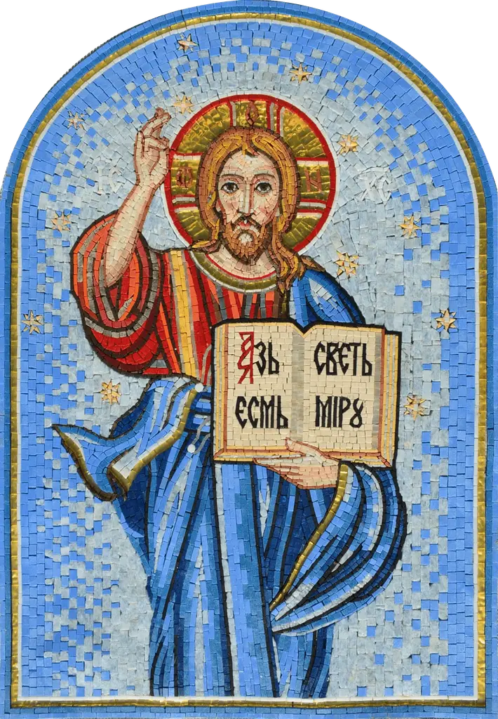 Arched Mosaic Jesus Christ Holding The Bible - 120cm X 180cm (47" X 71")