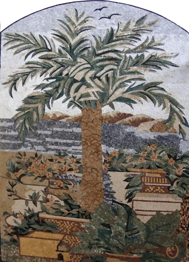 Arched Mosaic - Palm Tree - 135cm X 180cm (53" X 71")
