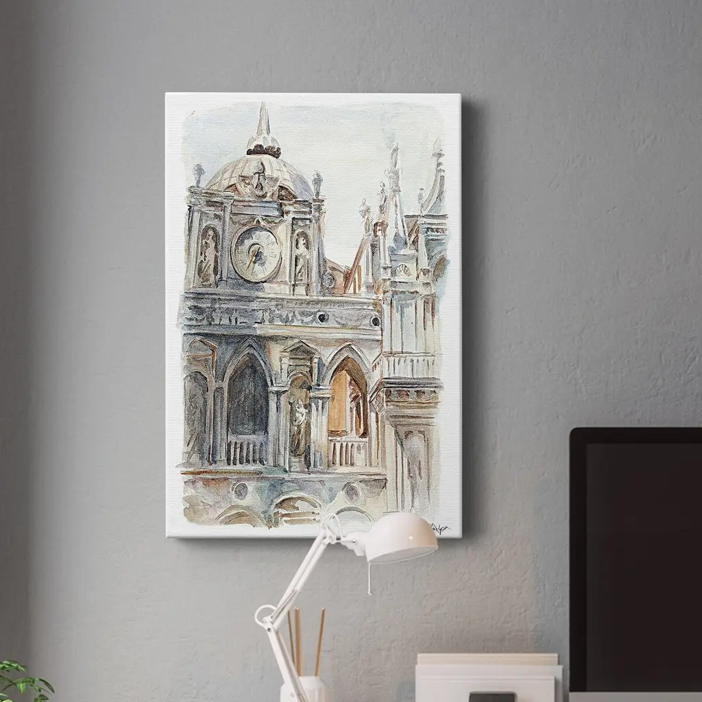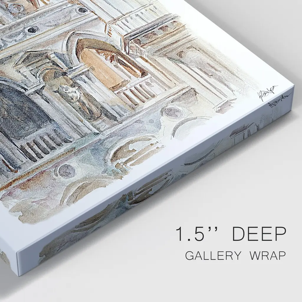 Architectural Watercolor II Premium Gallery Wrapped Canvas - Ready to Hang A premium hand stretched gallery wrapped canvas print created to last. Featuring a beveled a solid wood stretcher bar, each piece comes ready to hand 5 SIZES AVAILABLE 8''X12'' - Overall Size 16'X20'' - Overall Size 24''x32'' - Overall Size 30''x40'' - Overall Size 36''x48'' - Overall Size Each piece is made to order. Built to Last Each piece comes ready to hang Solid wood stretcher Fade and Water resistant Made domestically